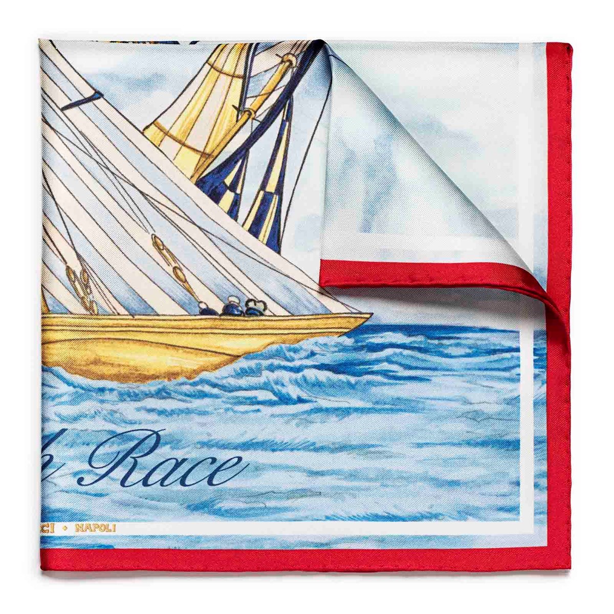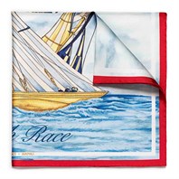 Crafted from 100% silk twill, the scarf not only exudes luxury but also ensures a soft, comfortable feel against your skin. The hand-edged finishing adds an extra touch of sophistication. The edges of the scarf are adorned with the vibrant colors representing each team in the 36th edition of the America's Cup, making it a perfect statement piece for fans and fashion aficionados alike. Whether you're at the yacht club, a sailing event, or simply looking to elevate your everyday style, the Red Luna Rossa Team Match Race Scarf is a must-have accessory that celebrates a rich maritime heritage.