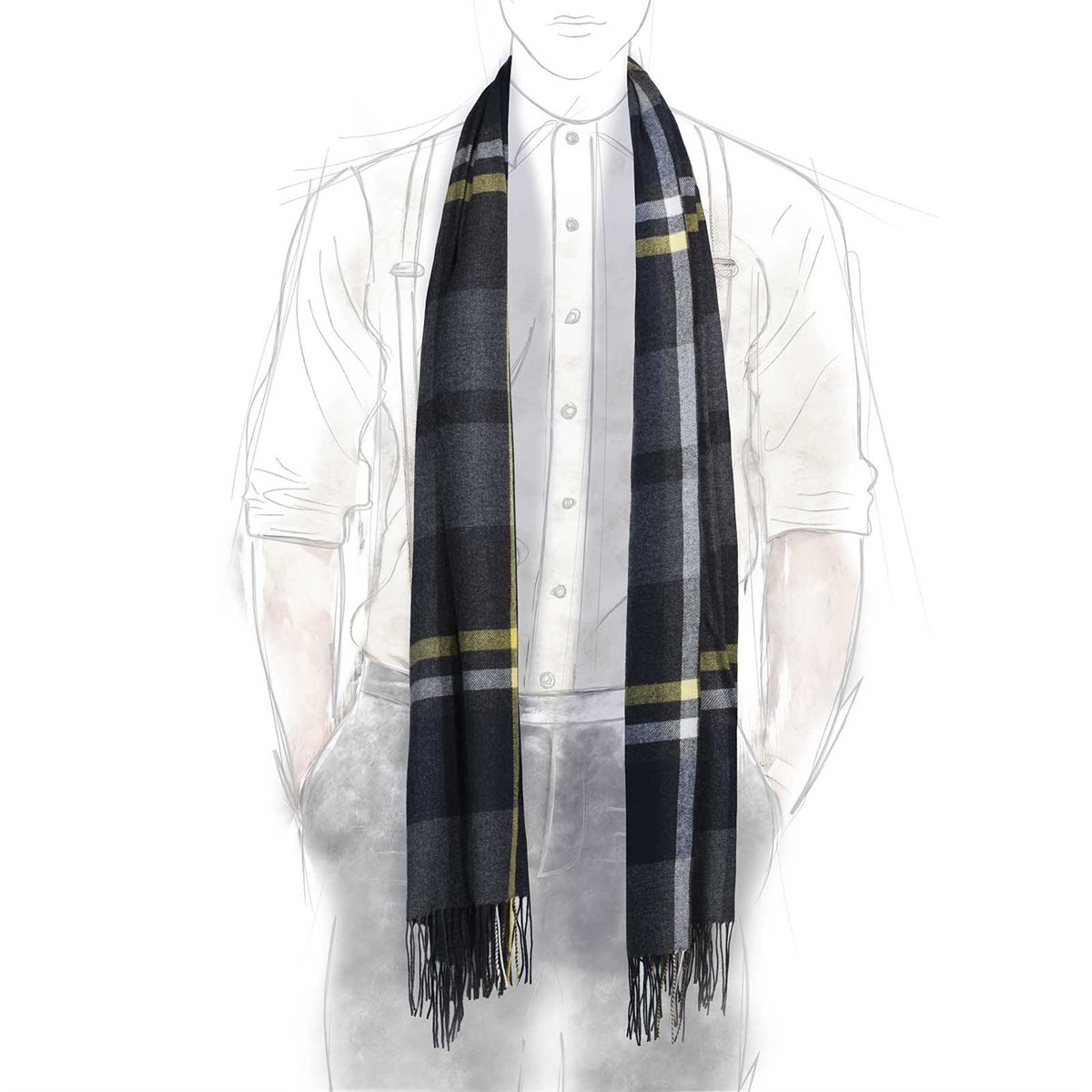 This scarf is not just an accessory; it's an essential addition to your wardrobe that complements both men's and women's fashion. The Rubinacci Gray and Yellow Checked Pashmina Scarf is perfect for layering, making it a must-have for any season. Embrace luxury and style with this exquisite piece that enhances your outfit while providing warmth and comfort.