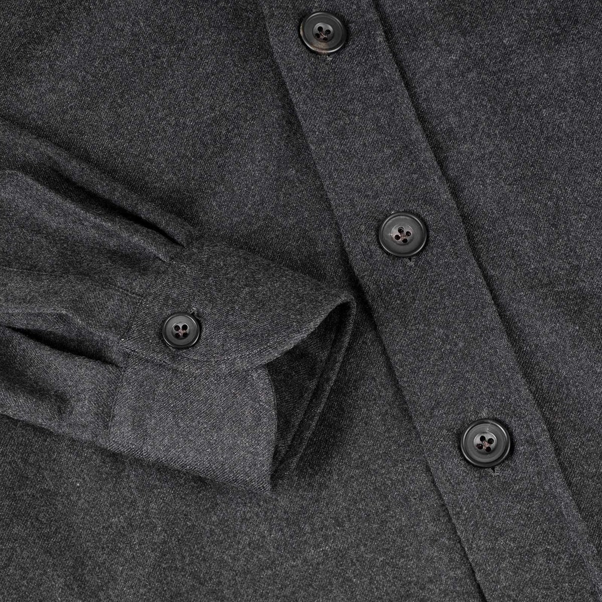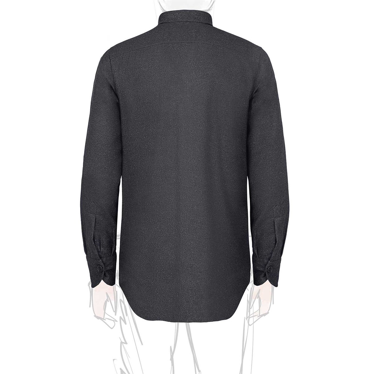 Style: long sleeves with cuff, classic collar, front closure with horn buttons
