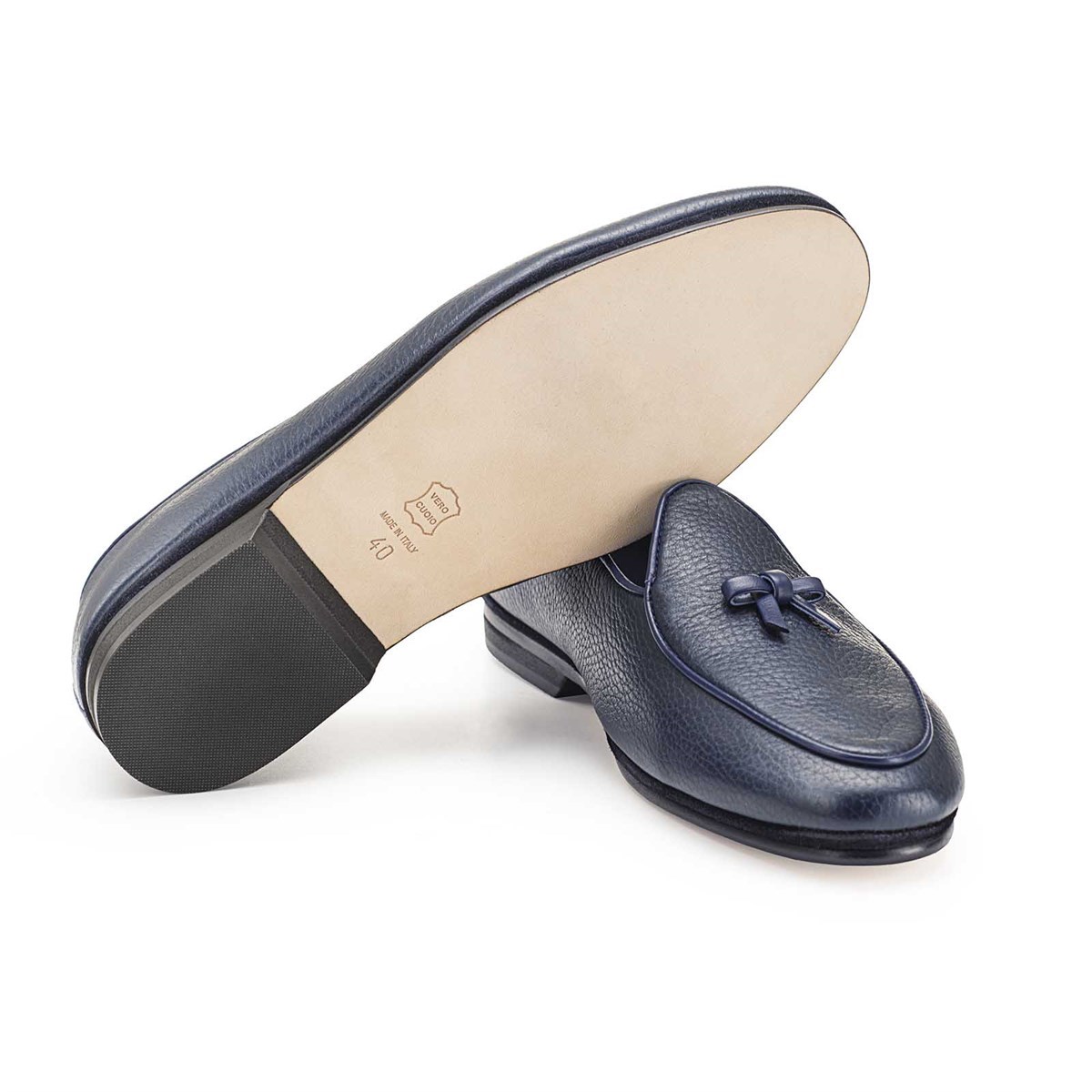 Crafted from premium deerskin leather, the Marphy moccasins boast a soft, supple texture and a lightweight construction that molds to your foot for a personalized fit. The striking blue color adds a touch of sophistication, making these shoes a versatile addition to your wardrobe.
