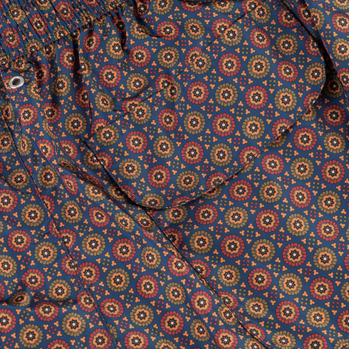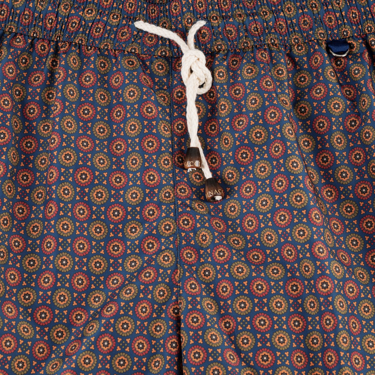 Blue swim shorts with geometric print