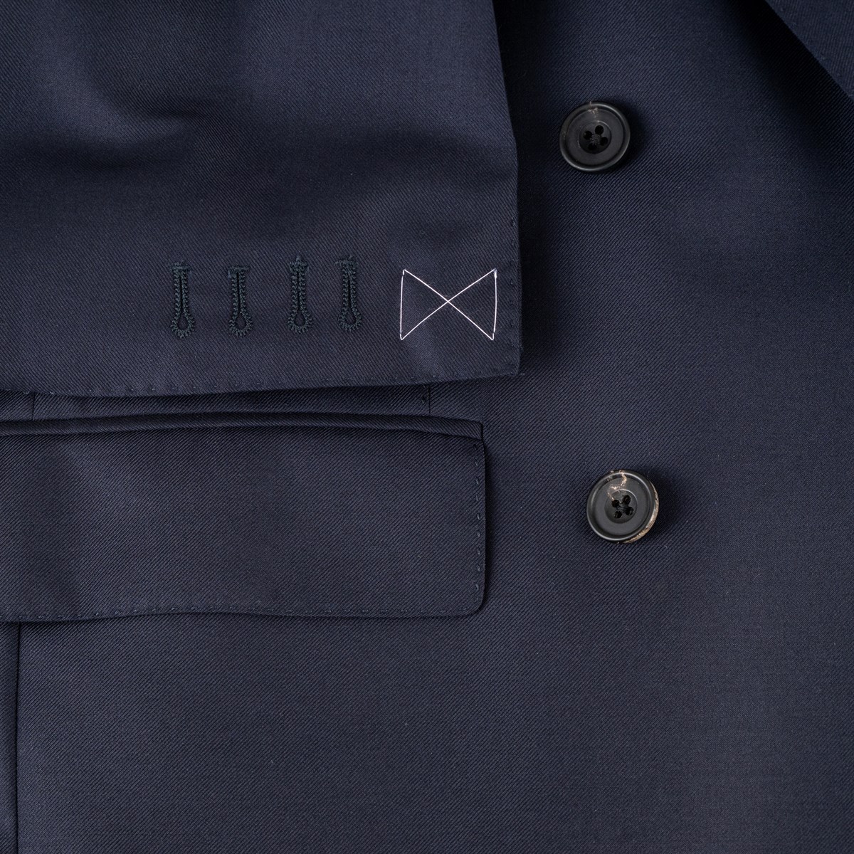 The sleeve buttonholes are left closed to allow for any necessary alterations in length.