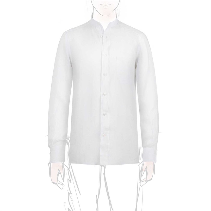Questa camicia vanta una meticolosa lavorazione artigianale, caratterizzata da un colletto classico, cuciture su misura sulle spalle e giromanica che garantiscono una vestibilità perfetta. La mouche cucita a mano aggiunge un tocco di raffinatezza, mentre la barra e l'asola ricamate a mano testimoniano la qualità artigianale. Rifinita con lussuosi bottoni in madreperla, questa camicia incarna stile e resistenza.