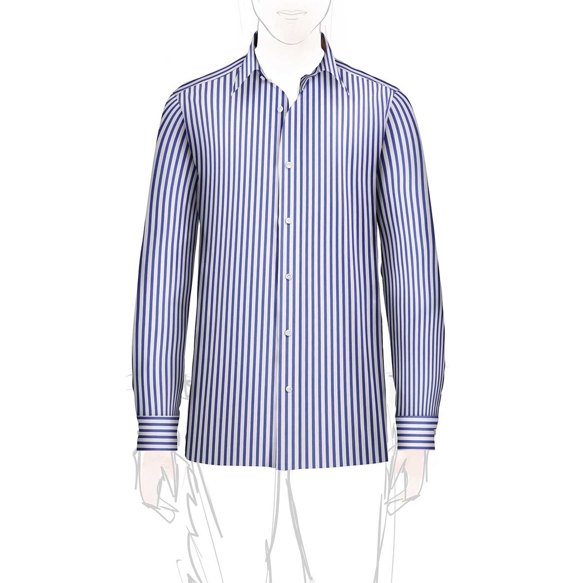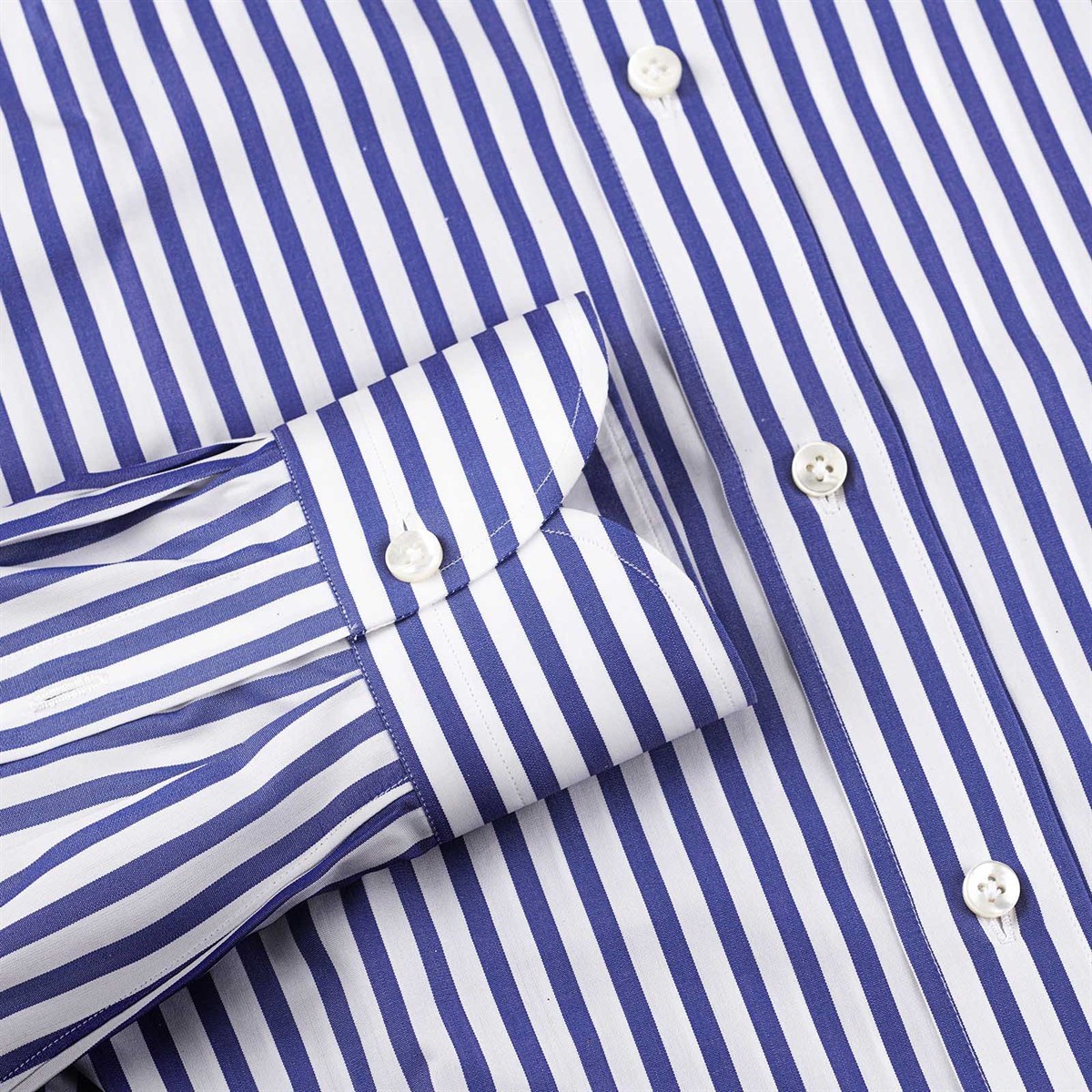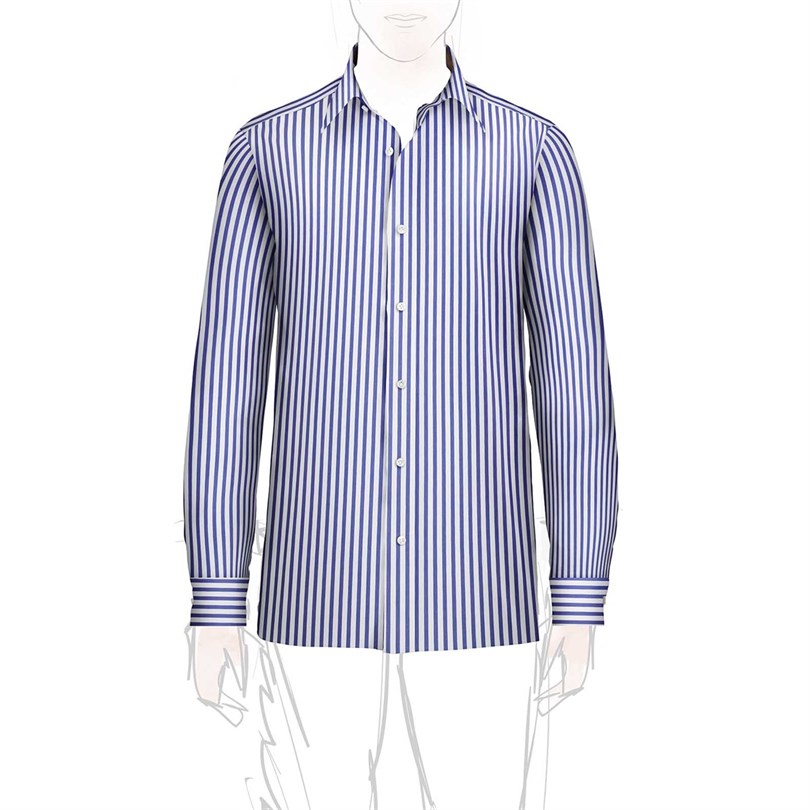 La camicia presenta un sofisticato colletto diviso con stecche rimovibili, che ti consente di personalizzare il tuo look. La meticolosa lavorazione artigianale è evidente nel collo, nelle spalle, nel giromanica e nella mouche cuciti a mano, a dimostrazione dell'attenzione ai dettagli che definisce una qualità superiore. Ogni travetta e asola è sapientemente ricamata a mano, mentre i lussuosi bottoni in madreperla aggiungono un tocco di eleganza.