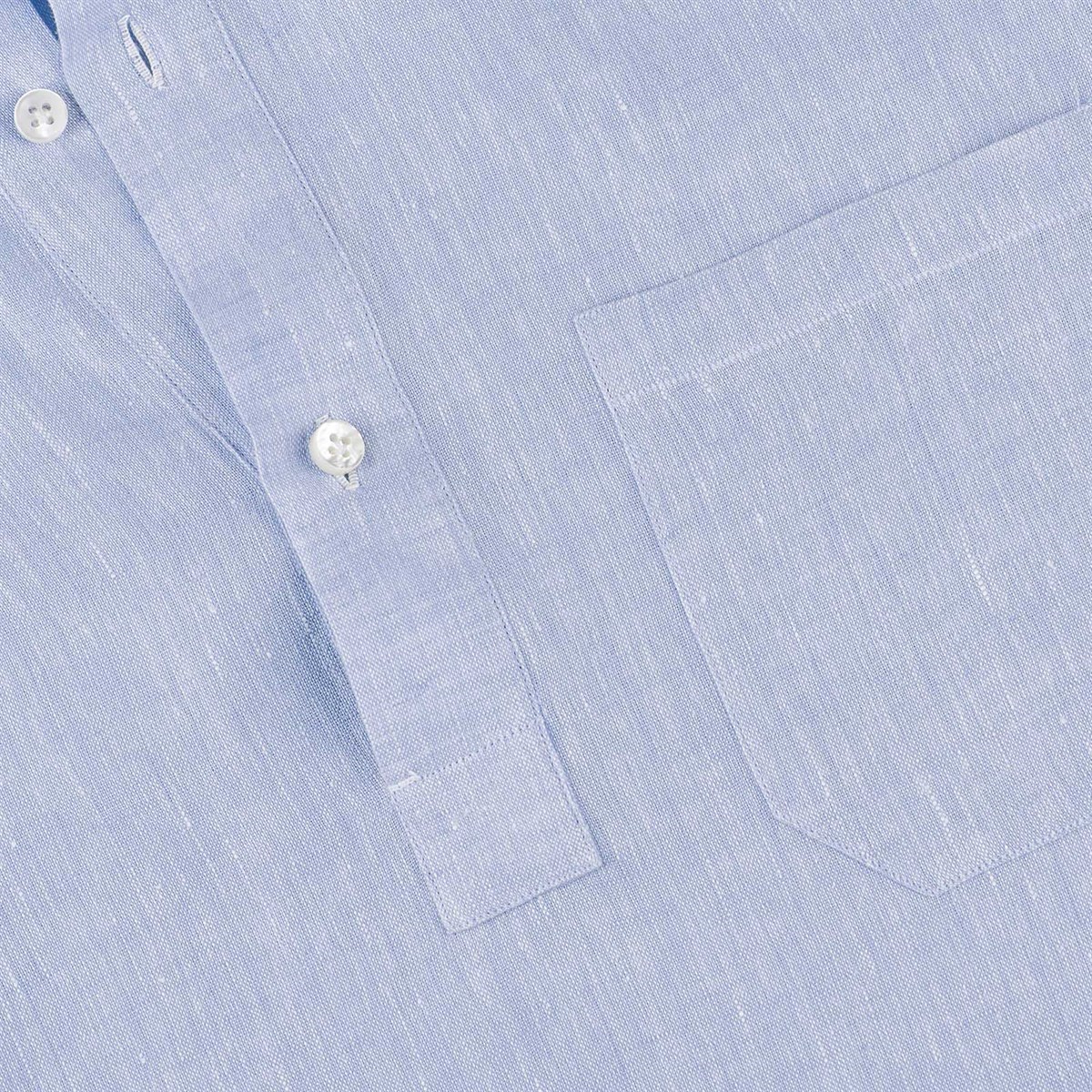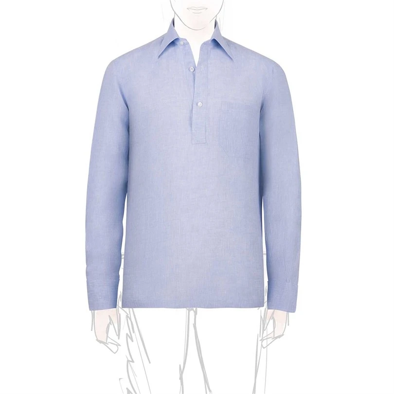 Questa polo presenta un colletto classico ed è lavata sapientemente per un tessuto morbido e vissuto -nel sentire. La meticolosa lavorazione artigianale include dettagli cuciti a mano come la mouche, i finimenti ricamati a mano e l'asola, garantendo che ogni pezzo sia unico. I lussuosi bottoni in madreperla aggiungono un tocco di eleganza, distinguendo questa camicia dall'ordinario.