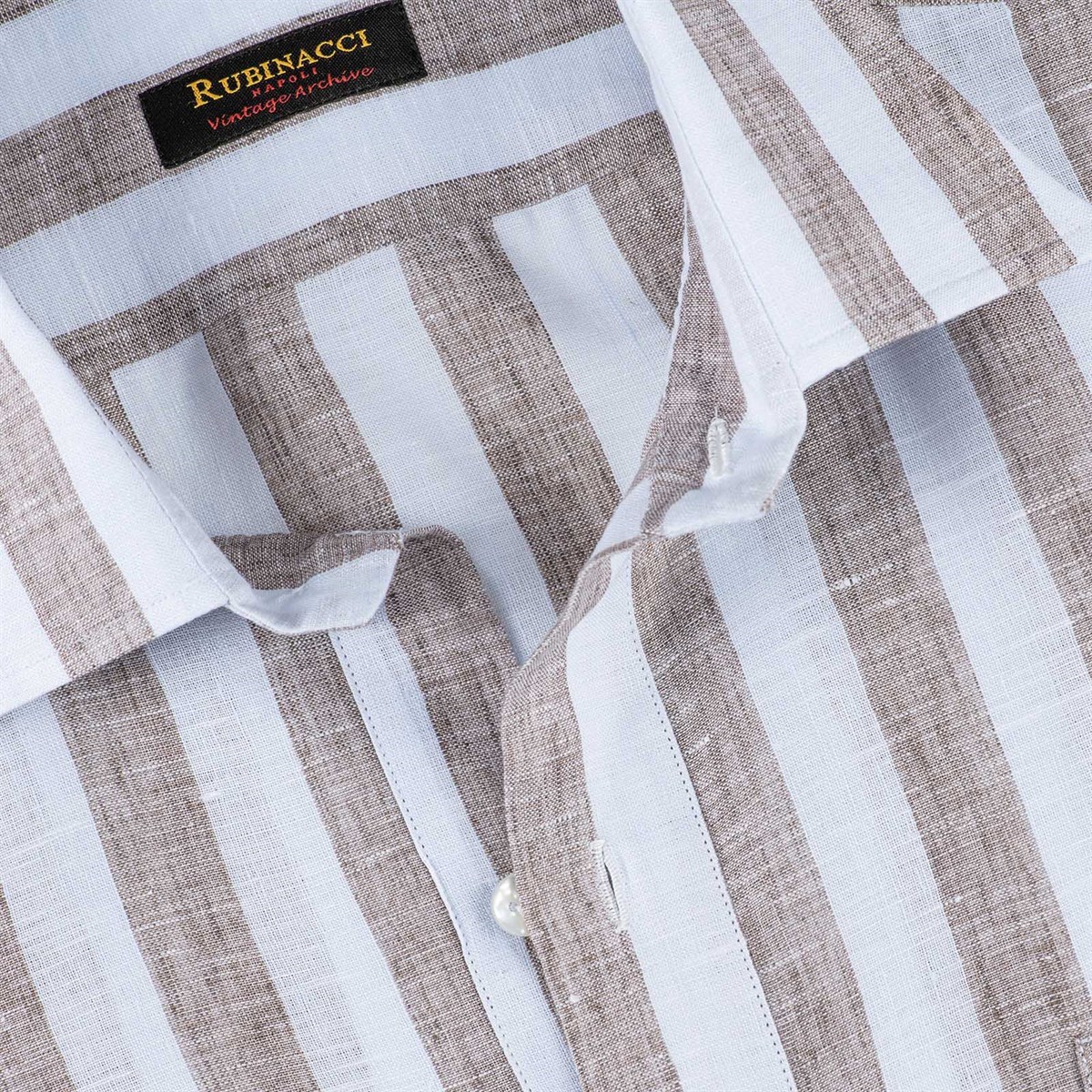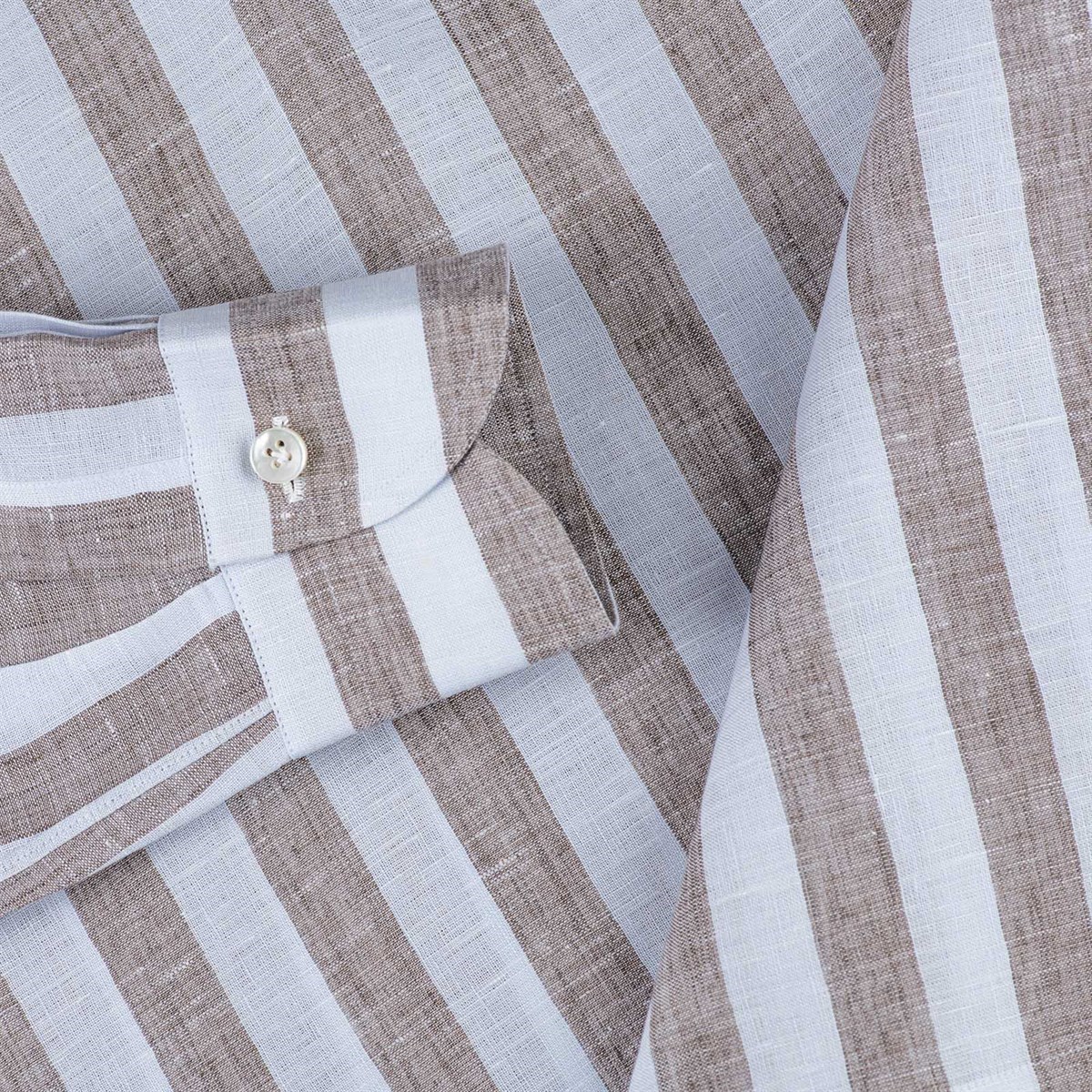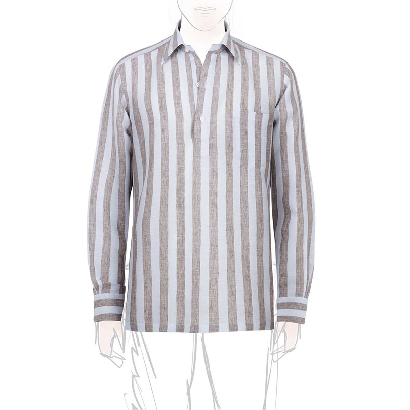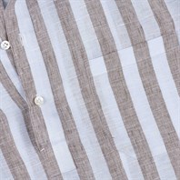 Realizzata al 100% in lino, questa camicia non solo è fantastica a contatto con la pelle, ma favorisce anche la circolazione dell'aria, mantenendoti fresco e confortevole per tutta la giornata. Abbraccia il fascino del lino con la polo in lino a righe nocciola: un'aggiunta versatile a qualsiasi guardaroba sofisticato.