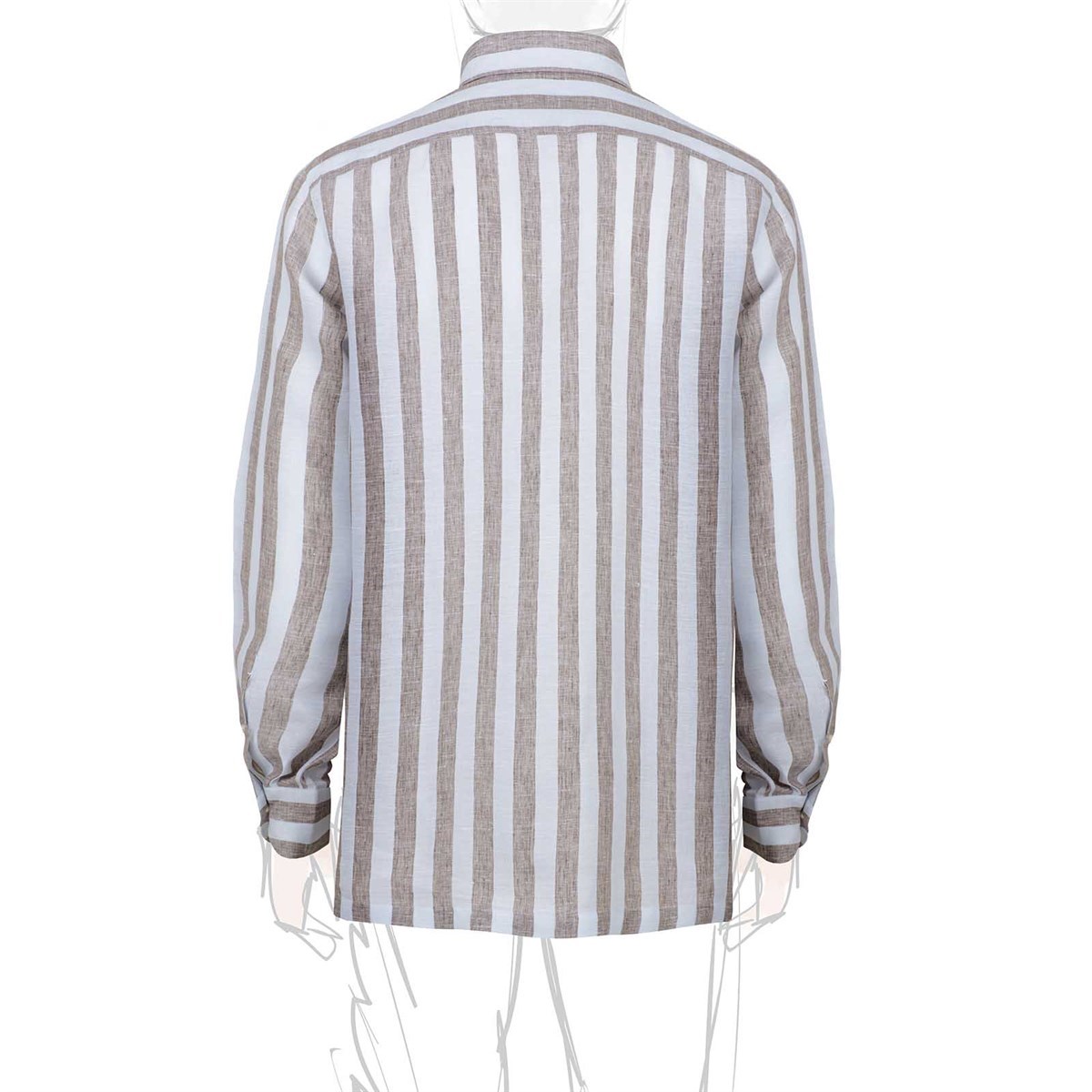 La camicia presenta una finitura lavata che ne esalta la consistenza morbida, completata da un colletto classico e cuciture accuratamente realizzate su spalle e giromanica per una vestibilità su misura. Dettagli unici in mouche cuciti a mano, insieme a puntine e asole ricamate a mano, mostrano la maestria artigianale che caratterizza ogni pezzo. I lussuosi bottoni in madreperla aggiungono un tocco elegante, assicurandoti un aspetto raffinato e raffinato.