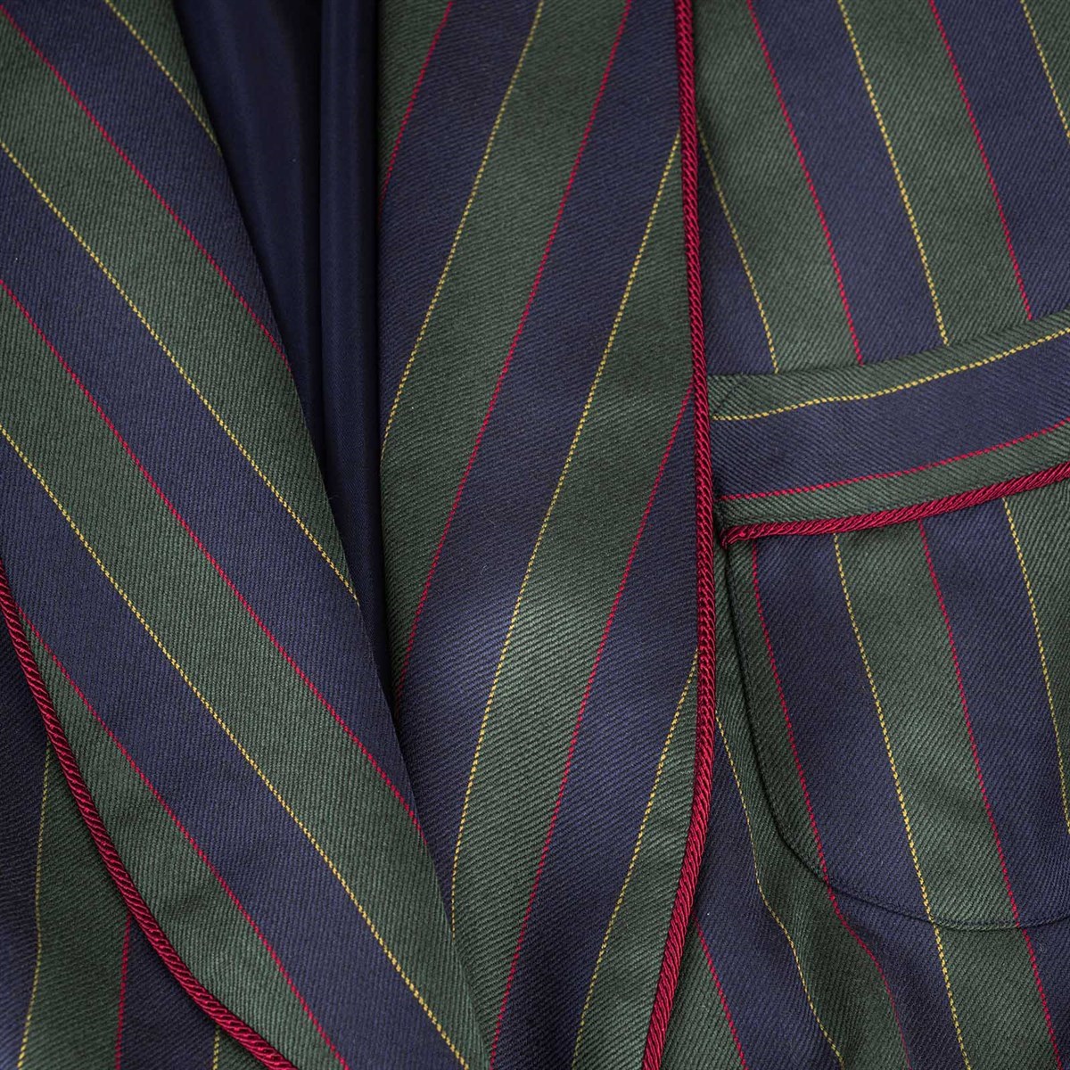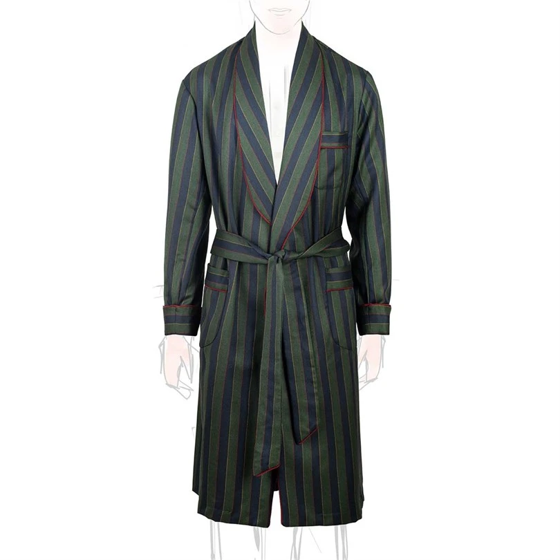 Concedeti o regalalo a qualcuno di speciale con questo lussuoso tessuto in lana e cashmere a righe Vestaglia di Rubinacci: dove il comfort incontra la raffinatezza.