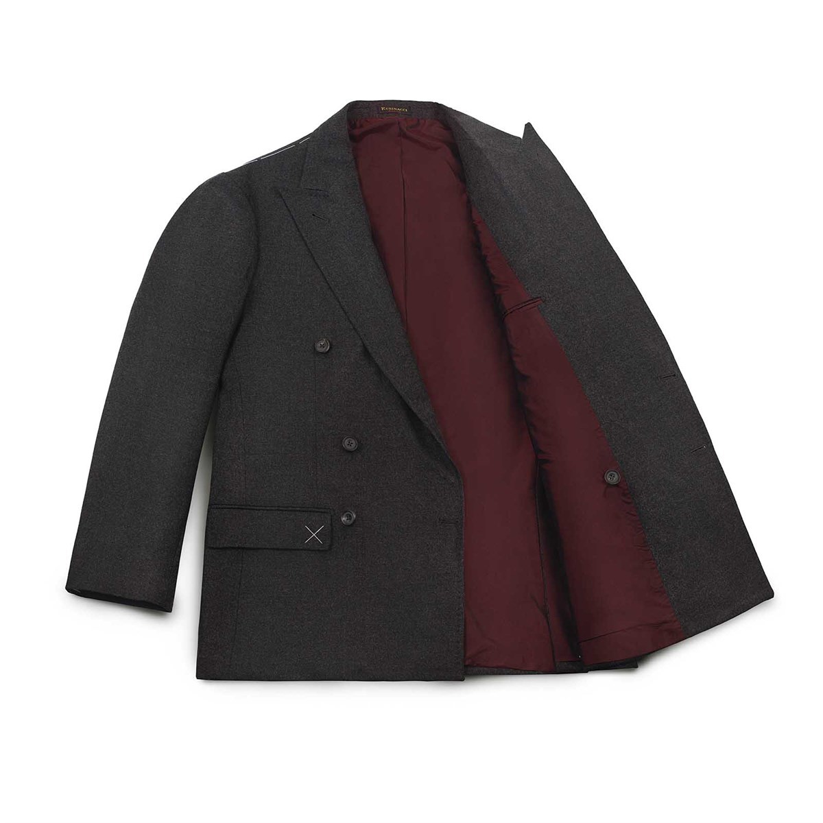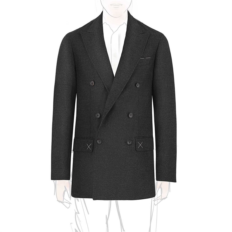 Realizzata in flanella di lana al 100%, questa giacca doppiopetto combina una sensazione di leggerezza con una silhouette elegante. I sei bottoni in corno aggiungono un tocco di fascino classico, mentre l'interno completamente foderato in seta garantisce comfort e finiture lussuose.