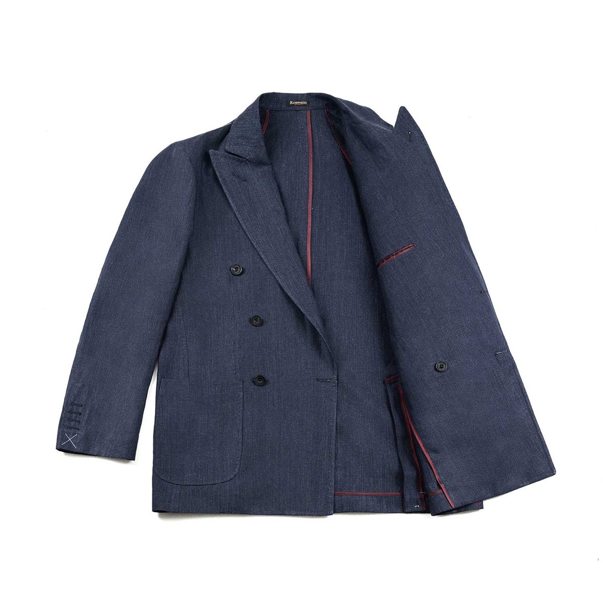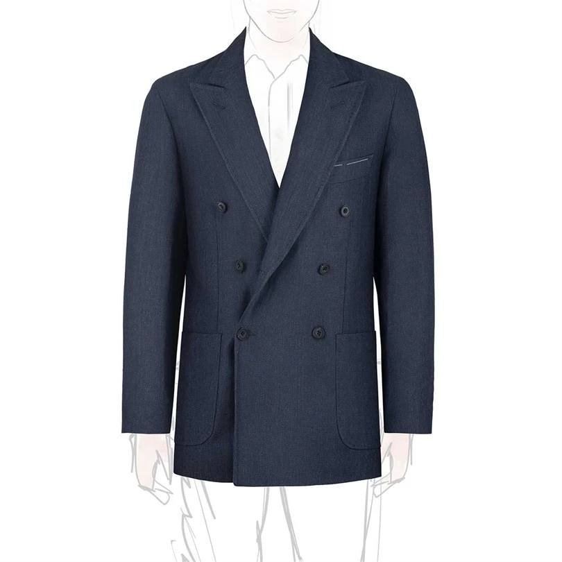 Il blazer doppio petto, 6 bottoni in corno e tasche applicate, completamente sfoderato, è un’alternativa dal sapore sportivo e grintoso.