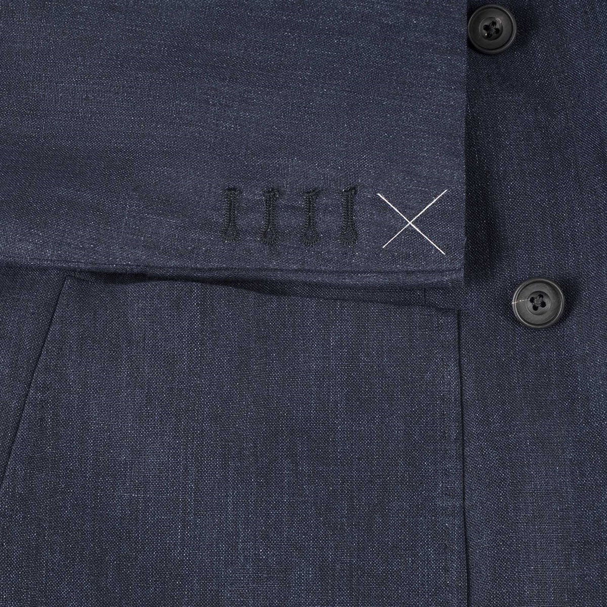 Le asole alle maniche sono chiuse nel caso sia necessario cambiare la lunghezza della manica. Servizio non disponibile online.