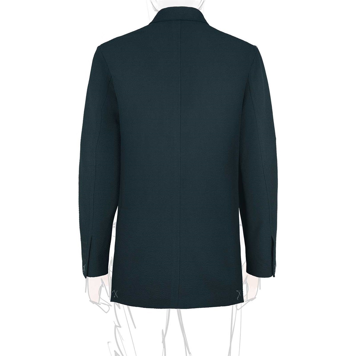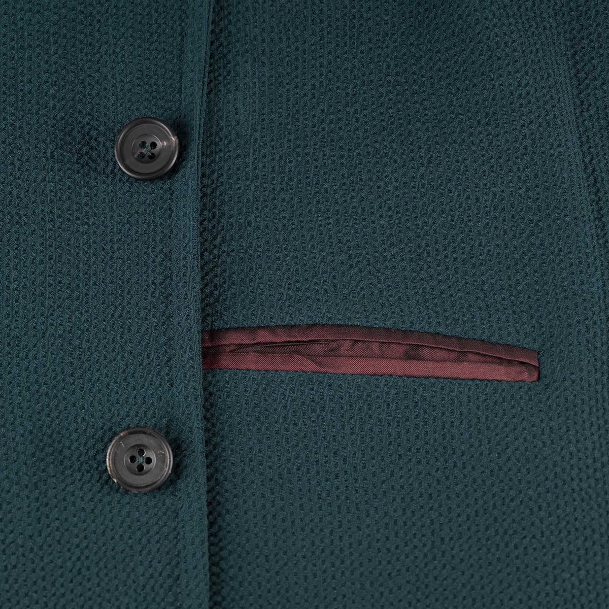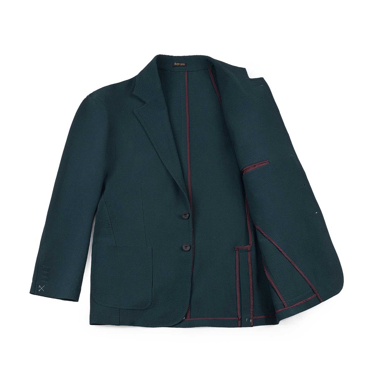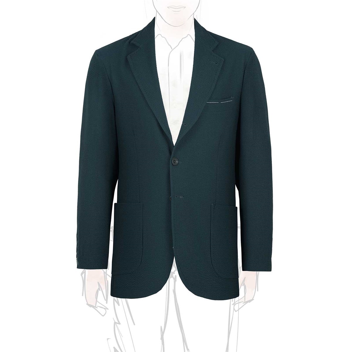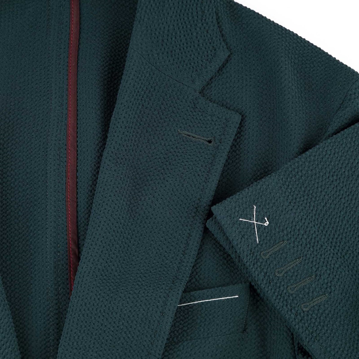 Realizzata in un tessuto leggero e traspirante, questo blazer destrutturato in seersucker verde è perfetto per i mesi più caldi. La caratteristica superficie increspata evita il contatto diretto con la pelle, garantendo freschezza e comfort anche nelle giornate più afose. Raffinata ma informale, questa giacca si adatta con eleganza sia a momenti di relax che a contesti più curati e ricercati. La scelta adatta per chi desidera un blazer unico. Le asole alle maniche sono chiuse nel caso sia necessario cambiare la lunghezza della manica. Servizio non disponibile online.