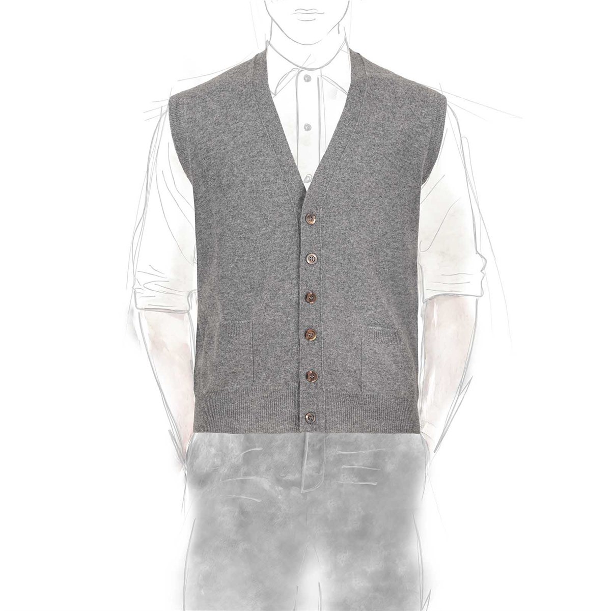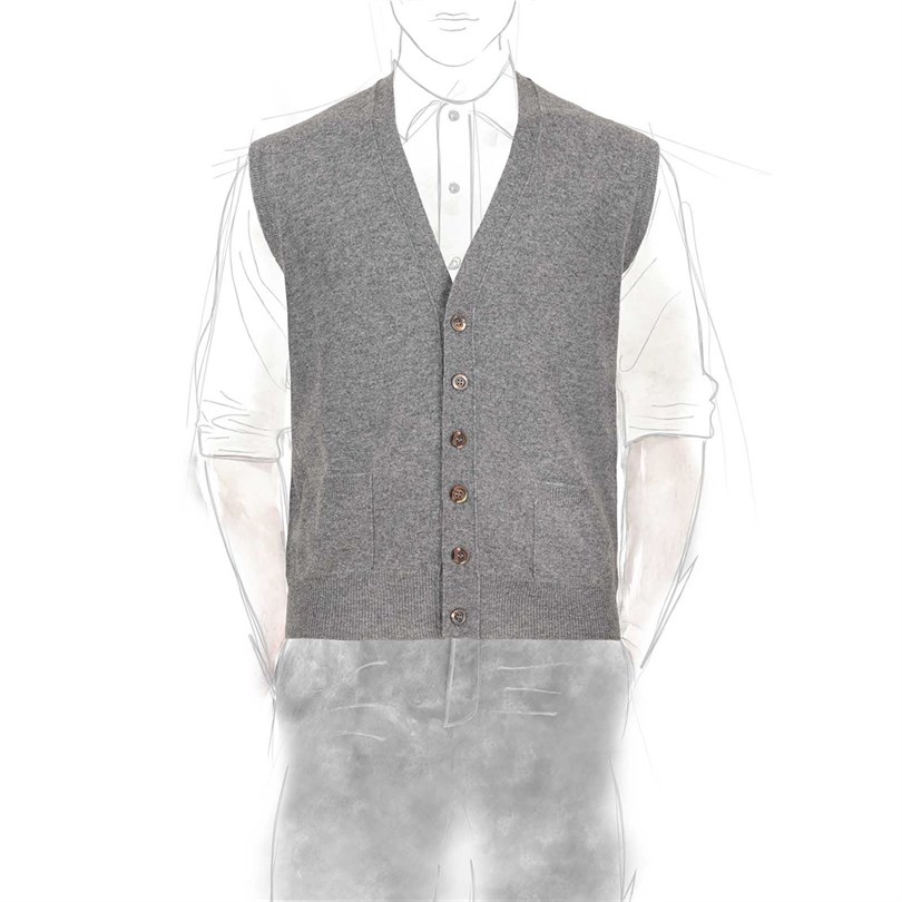 Ogni dettaglio racconta la maestria artigianale della Maison: le linee pulite, il taglio impeccabile e i bottoni in madreperla e la finitura in gros-grain, dettaglio sartoriale che aggiunge stabilità e un contrasto materico raffinato. Perfetto sopra una camicia e sotto una giacca per un’eleganza rilassata, il gilet in cashmere Rubinacci è un capo iconico che unisce tradizione e comfort.