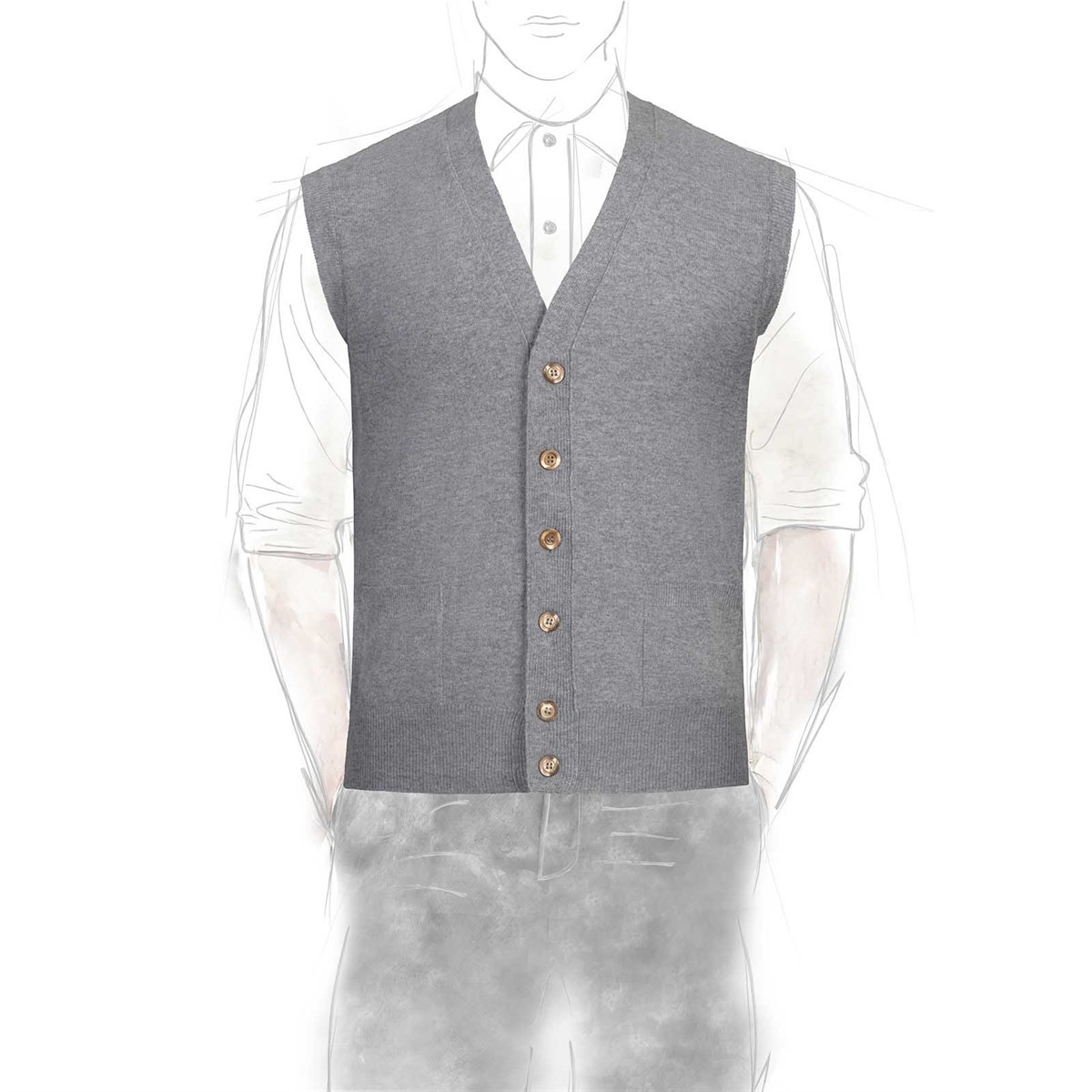Ogni dettaglio racconta la maestria artigianale della Maison: le linee pulite, il taglio impeccabile e i bottoni in madreperla e la finitura in gros-grain, dettaglio sartoriale che aggiunge stabilità e un contrasto materico raffinato. Perfetto sopra una camicia e sotto una giacca per un’eleganza rilassata, il gilet in cashmere Rubinacci è un capo iconico che unisce tradizione e comfort.