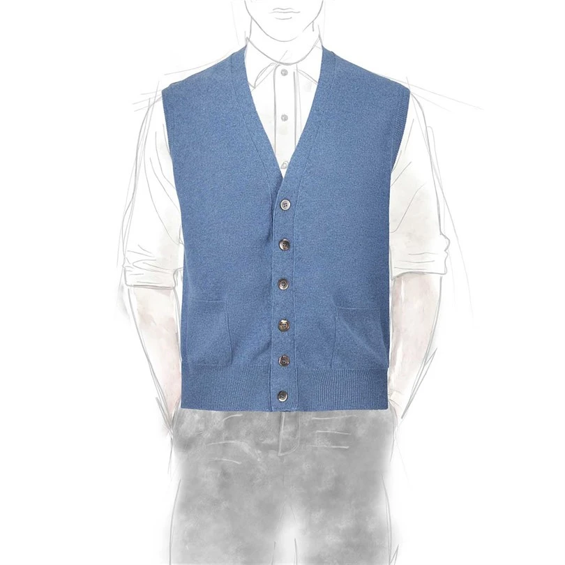 Ogni dettaglio racconta la maestria artigianale della Maison: le linee pulite, il taglio impeccabile e i bottoni in madreperla e la finitura in gros-grain, dettaglio sartoriale che aggiunge stabilità e un contrasto materico raffinato. Perfetto sopra una camicia e sotto una giacca per un’eleganza rilassata, il gilet in cashmere Rubinacci è un capo iconico che unisce tradizione e comfort.