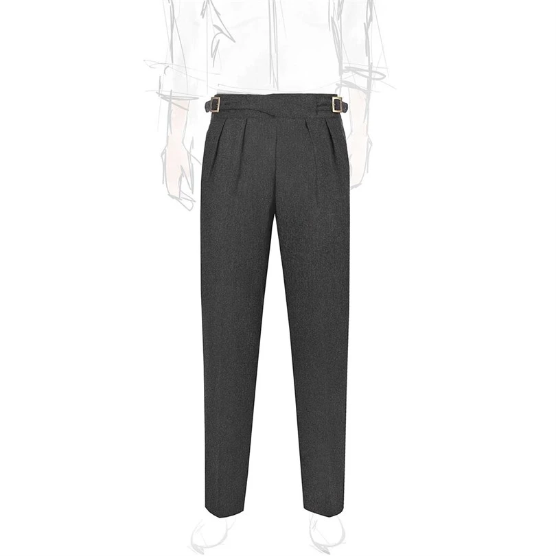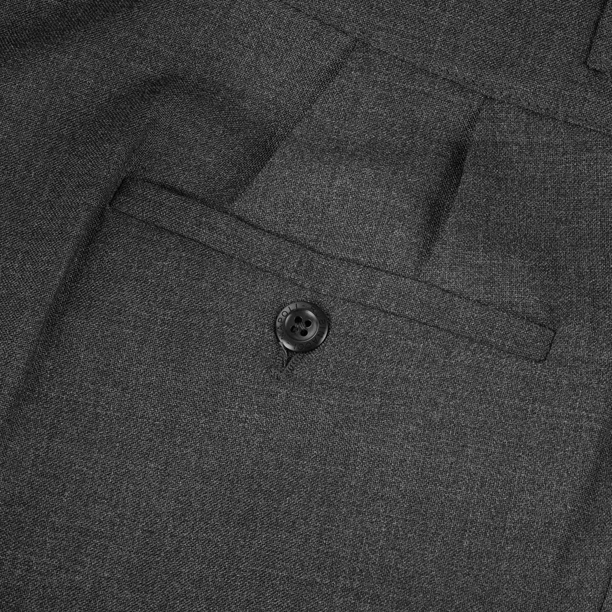 Stile: 2 pinces alla francese, tasche laterali oblique, tasche posteriori a filetto