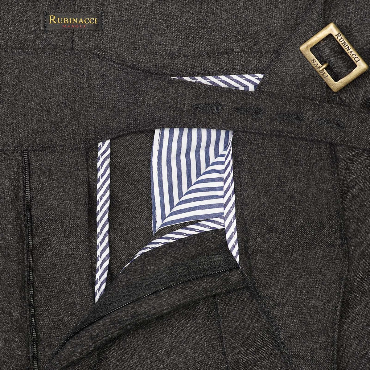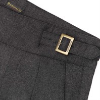 I pantaloni Manny reinterpretano con eleganza contemporanea lo stile iconico dei militari Gurkha. Realizzati in un tessuto in flanella, questi pantaloni coniugano linee decise e dettagli sartoriali con una vestibilità moderna e confortevole. Frutto dell’eccellenza artigianale Rubinacci, ogni capo è pensato per l’uomo che ricerca qualità, personalità e stile senza tempo. La chiusura a doppia cintura con linguette laterali regolabili e la vita alta esaltano la silhouette, conferendo al look un carattere distintivo e sofisticato. Realizzati con un tessuto composto per il 100% da flanella, questi pantaloni assicurano calore e morbidezza, ideali per affrontare con stile la stagione fredda.