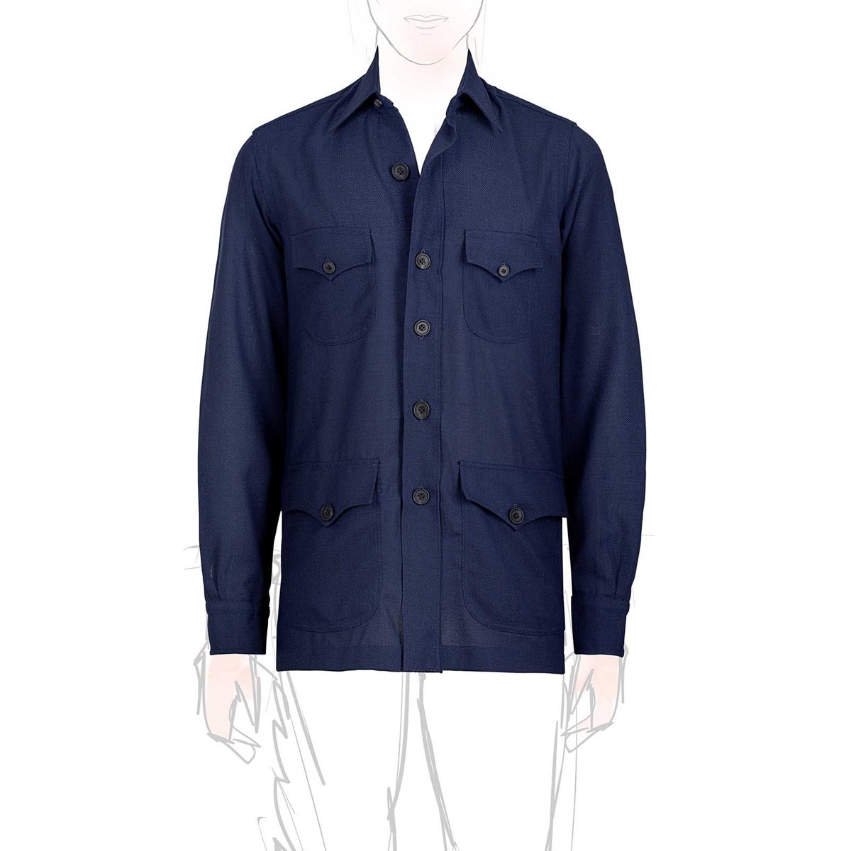 Sahariana in Hopsack di lana blu