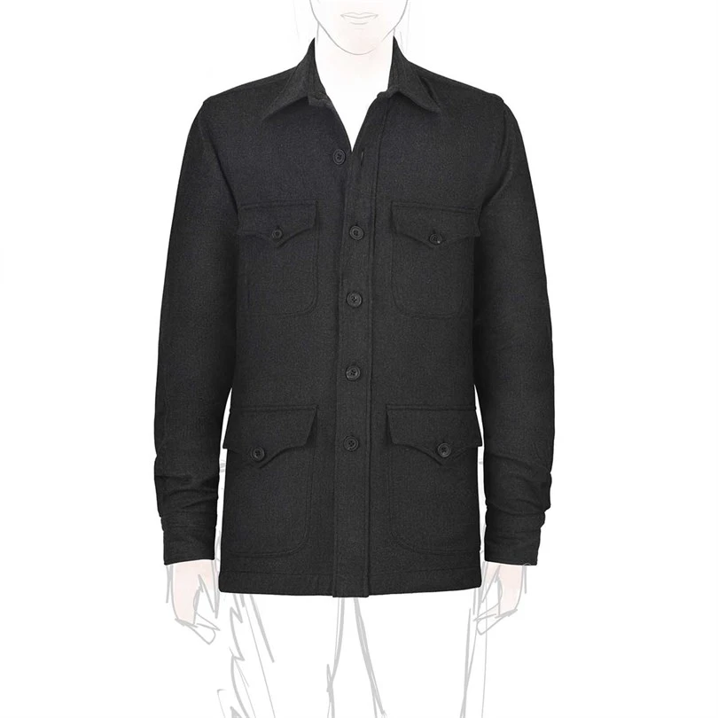 Progettata con una vestibilità leggermente ampia, offre comfort pur mantenendo un aspetto lucido . La giacca presenta ampie tasche con patta con chiusura a bottoni, che ricordano il tradizionale abbigliamento da campo, consentendo sia stile che funzionalità. Rifinito con bottoni in corno di alta qualità, questo capo è una testimonianza di meticolosa lavorazione artigianale e attenzione ai dettagli.