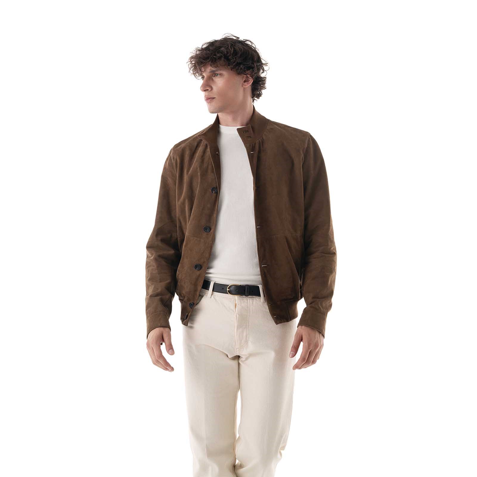 Bomber in camoscio tabacco