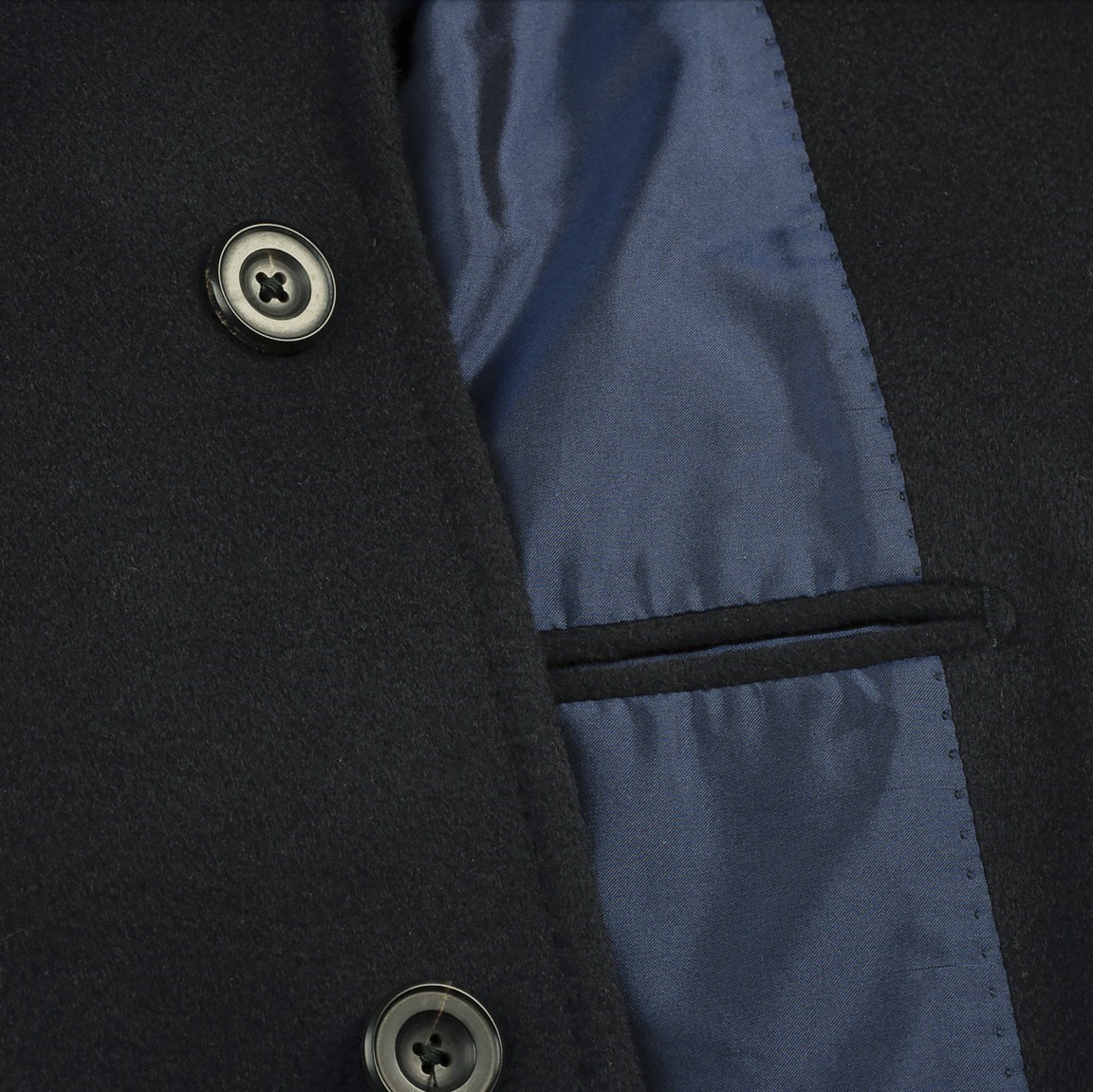 Che tu ti stia preparando per un'occasione speciale o desideri migliorare il tuo abbigliamento quotidiano, questo cappotto in cashmere blu è la scelta perfetta. Il suo design classico e i materiali di alta qualità assicurano che rimarrà un punto fermo nel tuo guardaroba per gli anni a venire. Sperimenta il massimo del lusso e del comfort con questo squisito pezzo di Rubinacci.