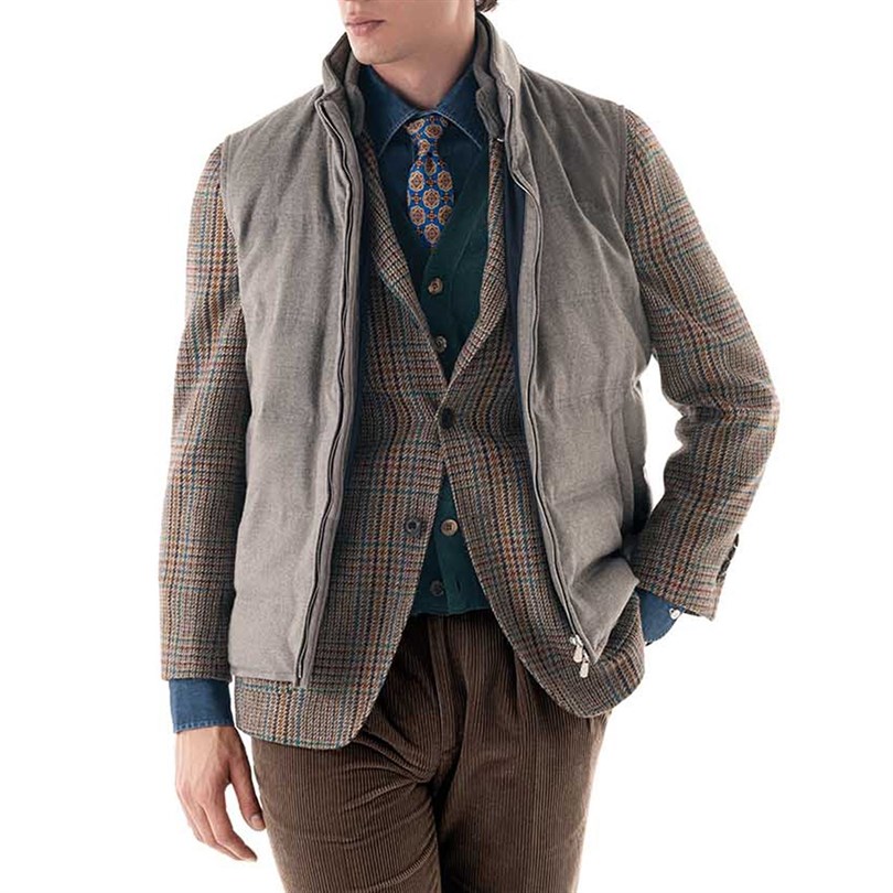 Investi in questo capo senza tempo e sperimenta il perfetto connubio tra eleganza e funzionalità. Ideale sia per le occasioni formali che casual, il gilet trapuntato in lana e cashmere color talpa è un'aggiunta indispensabile a qualsiasi guardaroba esigente. Acquista ora da Rubinacci e ridefinisci il tuo stile!
