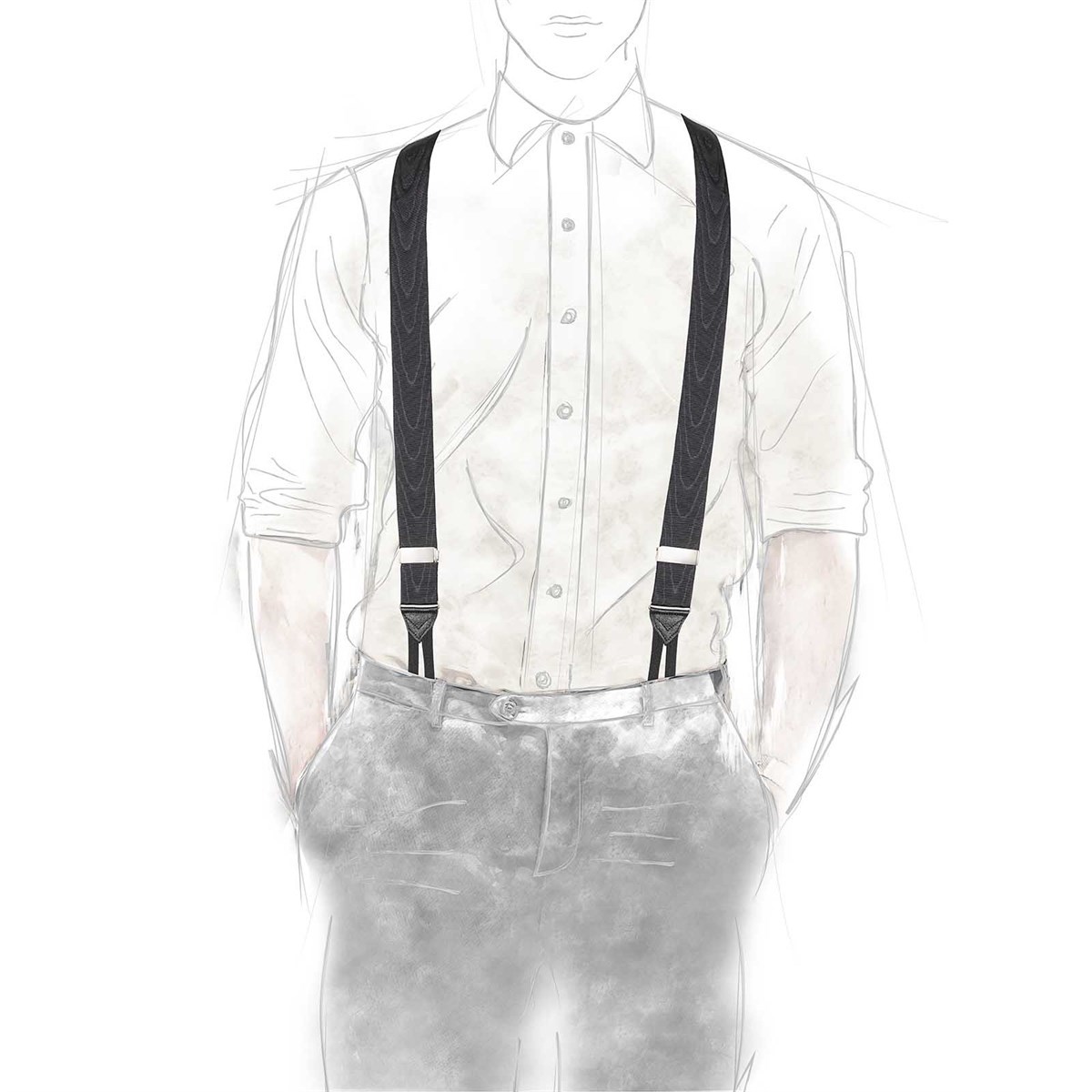 Che tu ti stia vestendo per un'occasione formale o aggiungendo un tocco di stile al tuo abbigliamento casual, le nostre bretelle nere sono abbastanza versatili da completare qualsiasi look. Il classico colore nero garantisce che possano essere abbinati facilmente con una varietà di outfit, rendendoli un punto fermo nel tuo guardaroba.