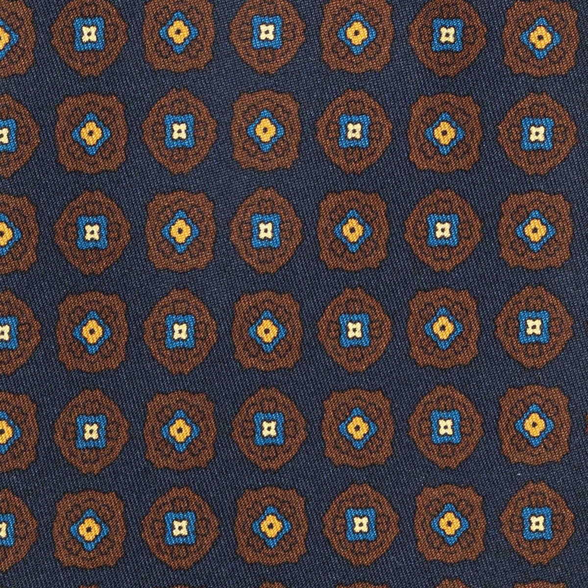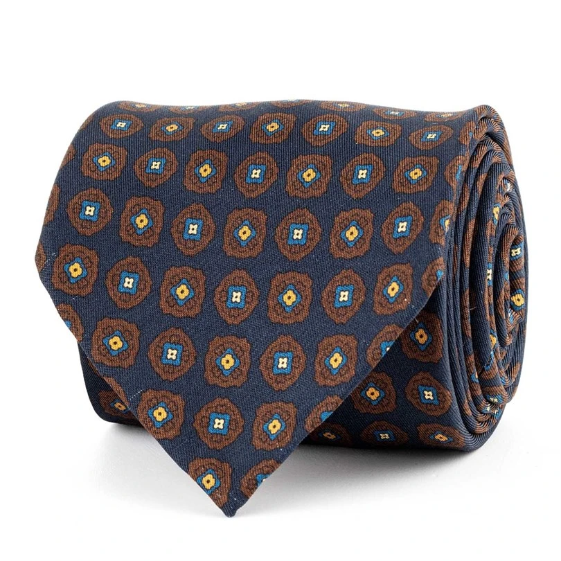Cravatta in twill di seta blu con stampa geometrica