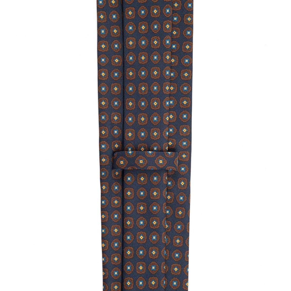 Realizzata in pregiato twill di seta, questa cravatta blu con stampa geometrica si distingue per la sua texture morbida e la brillantezza del colore, capace di donare vivacità e raffinatezza a ogni look. Il motivo geometrico, moderno e ricercato, reinterpreta un accessorio classico in chiave contemporanea, rendendolo perfetto sia per le occasioni formali sia per quelle più informali.
