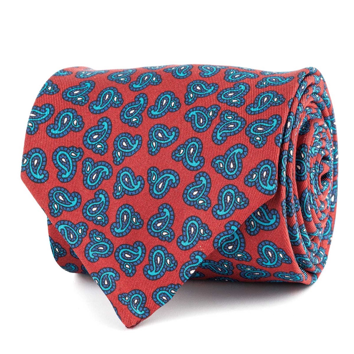 Con una larghezza di 8 cm, la cravatta presenta orli cuciti a mano ed è completamente sfoderata, caratteristica che garantisce una drappeggiatura morbida ed elegante, esaltando la naturalezza del nodo. Un accessorio esclusivo che racchiude tutta la maestria sartoriale della Maison Rubinacci, simbolo intramontabile di lusso e artigianalità italiana.