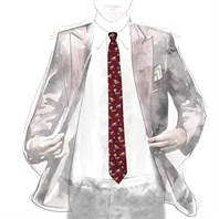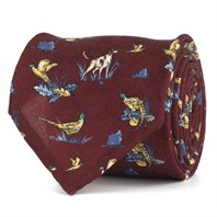 Cravatta in twill di lana bordeaux con stampa cane