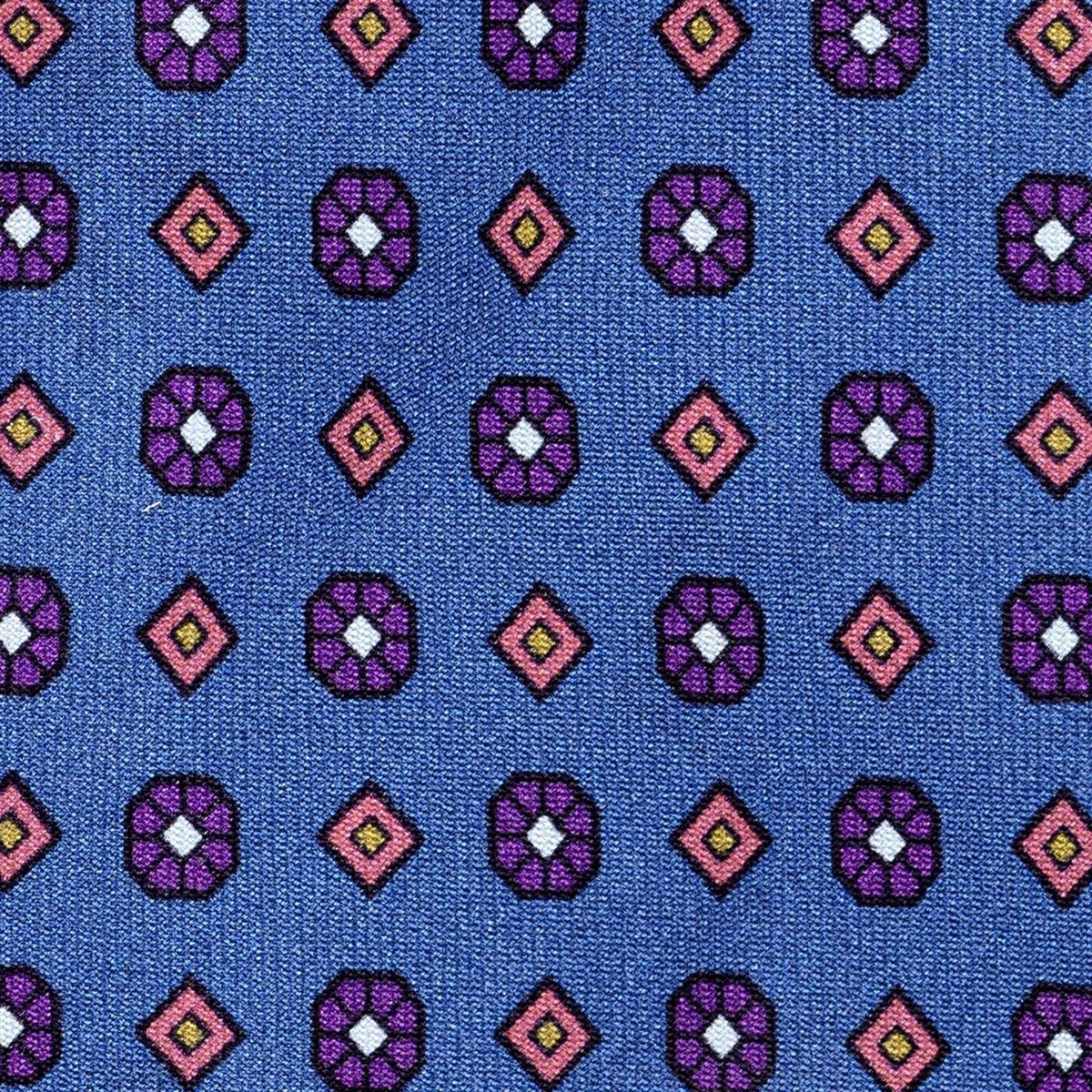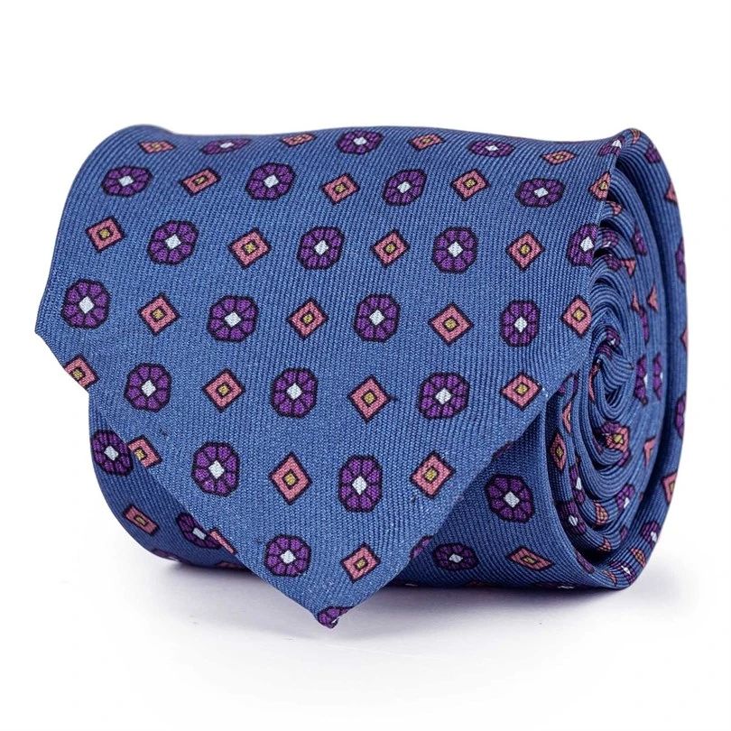 Cravatta in twill di seta con stampa floreale blu