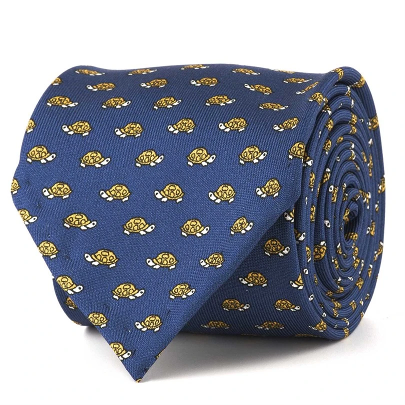 Cravatta in twill di seta con stampa tartaruga gialla
