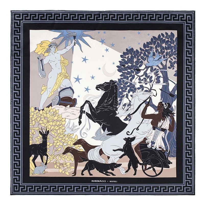 Indossare la sciarpa Artemide e Apollo è come portare con sé un pezzo di mitologia, scatenando conversazioni e ispirando ammirazione. La sua ricca narrativa e la squisita fattura lo rendono più di un semplice accessorio; è una dichiarazione di stile e raffinatezza. Migliora il tuo look e abbraccia l'incanto del divino con questa splendida sciarpa, perfetta da regalare o regalarsi.
