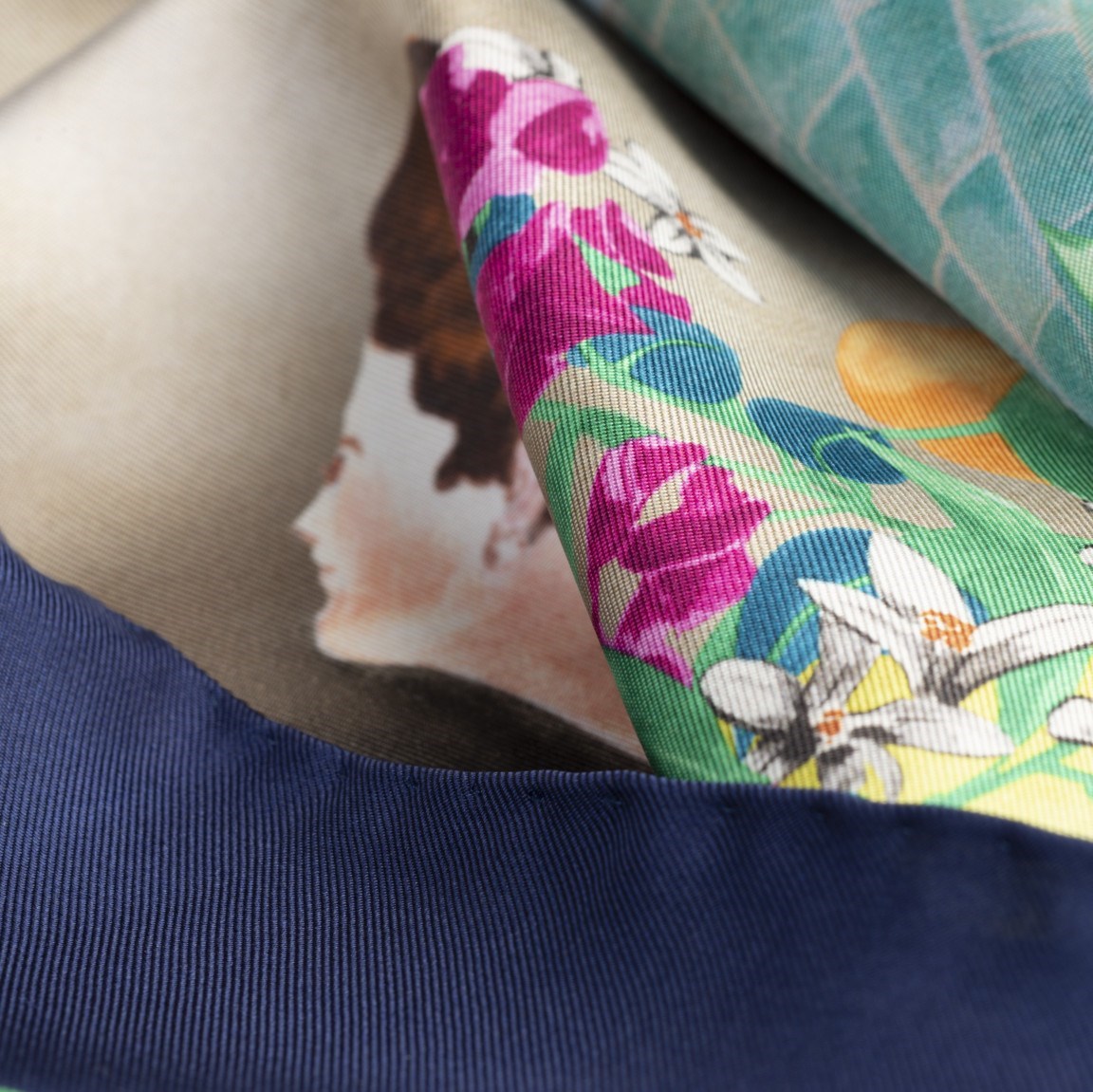 Realizzata in twill di seta al 100%, questa pochette presenta un'accattivante tonalità blu che evoca l'essenza dell'acqua dolce, riflettendo l'arte della sua ispirazione. La finitura bordata a mano aggiunge un tocco squisito, garantendo che ogni pezzo non sia solo visivamente sbalorditivo ma anche della massima qualità.