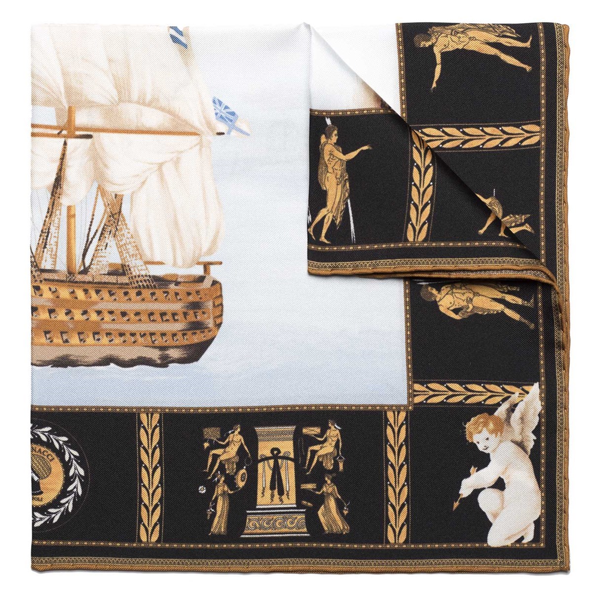 Realizzata in twill di seta al 100%, la borsa presenta un design unico che mette in mostra bellissimi Amorini ad ogni angolo, a simboleggiare il legame romantico dell'ammiraglio con Emma Lyon durante il suo soggiorno a Napoli nel 1793. I dettagli bordati a mano aggiungono un tocco di raffinatezza, che lo rende il pezzo perfetto per ogni occasione formale o casual.