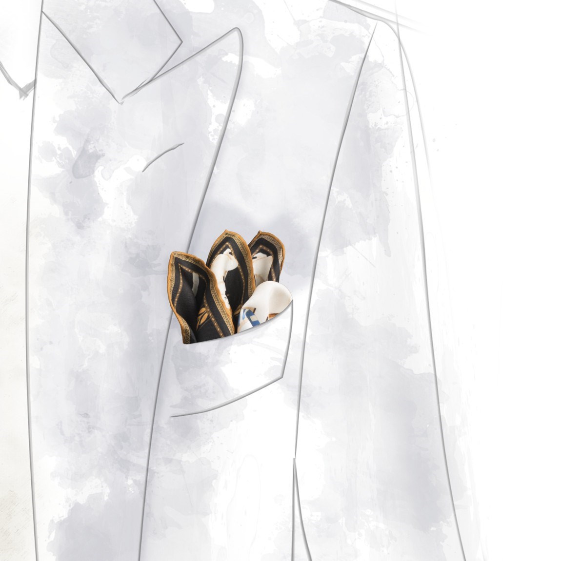 Che tu stia partecipando a un gala, a una cena o semplicemente cercando di migliorare il tuo outfit quotidiano, la pochette Black Victory è sia un accessorio elegante che un inizio di conversazione. Abbraccia un pezzo di storia mostrando il tuo senso unico dello stile con questa magnifica pochette.
