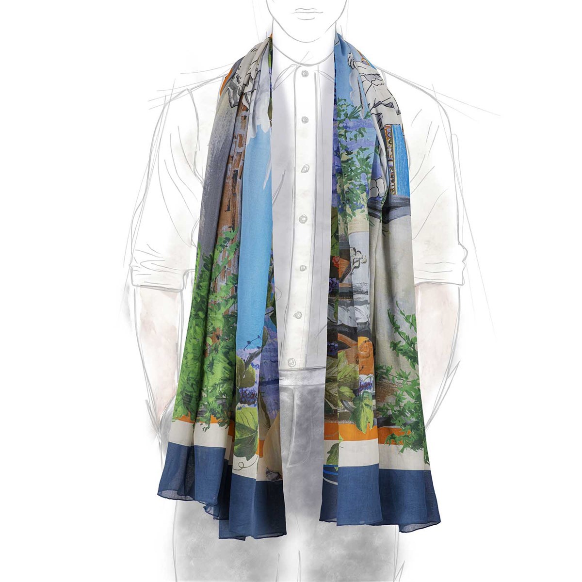 Con il suo design unico e il tessuto confortevole, questa stola non solo aggiunge un tocco di colore a qualsiasi outfit, ma funge anche da inizio di conversazione, celebrando il ritmo gioioso della danza della Tarantella. Abbraccia lo spirito dell'Italia e migliora il tuo look con questo pezzo squisito della collezione Maison Rubinacci.