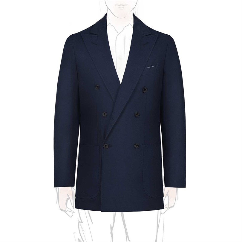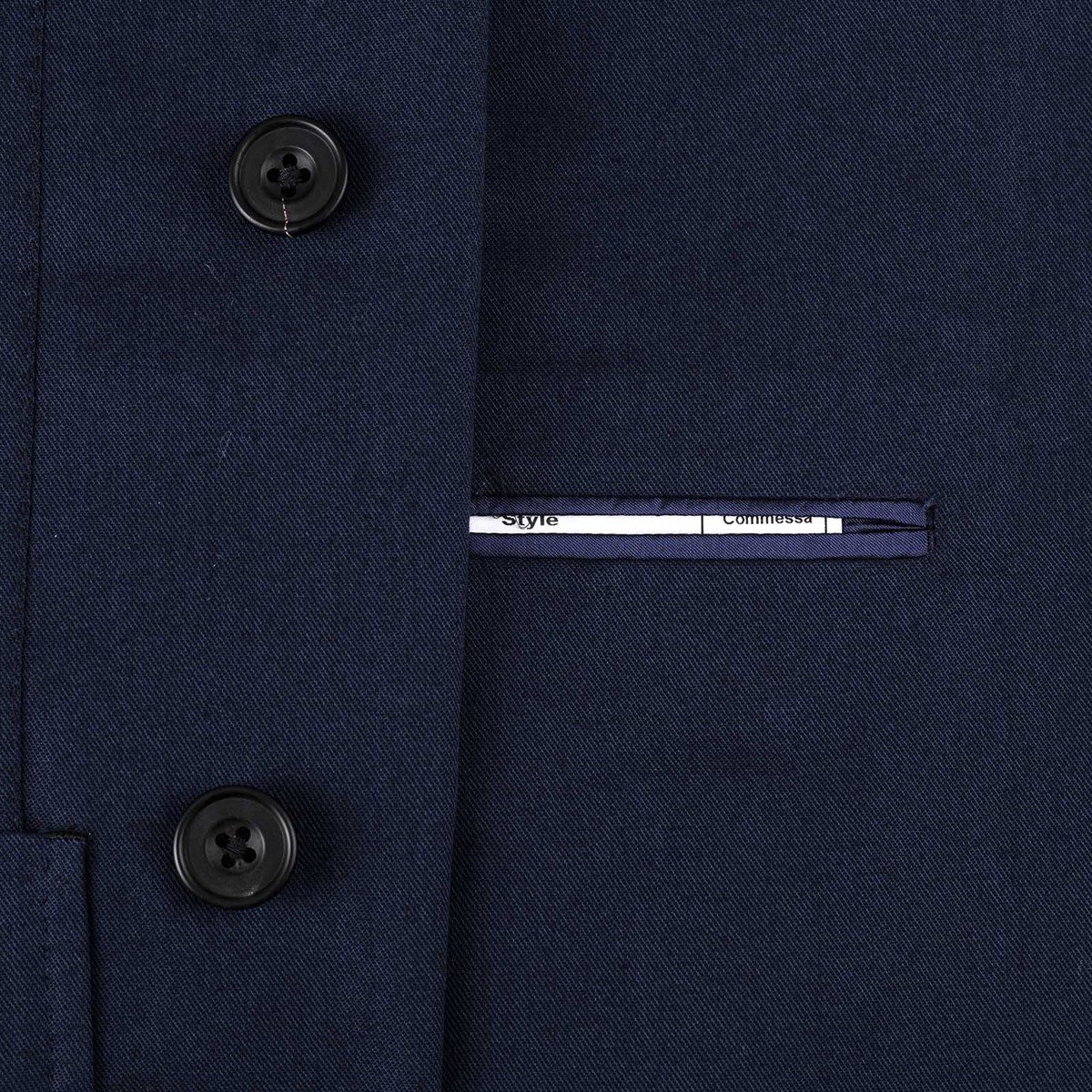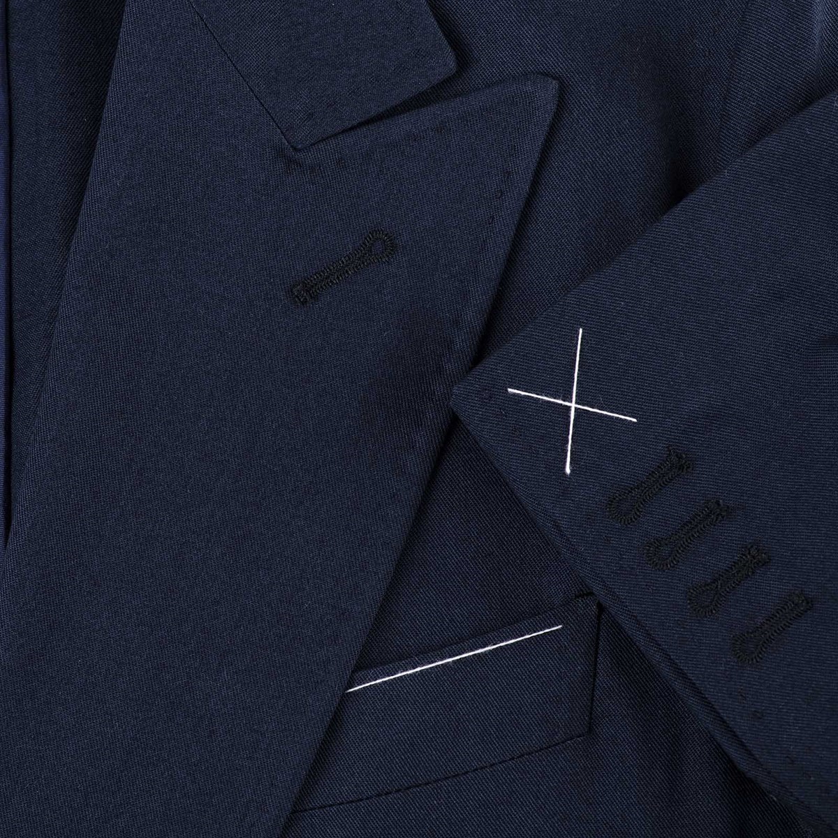 Questo blazer doppio petto, 6 bottoni in corno e tasche applicate, completamente sfoderato , e' stata realizzato da un morbido cotone blu anni 90' circa , morbido al tatto leggero e resistente.