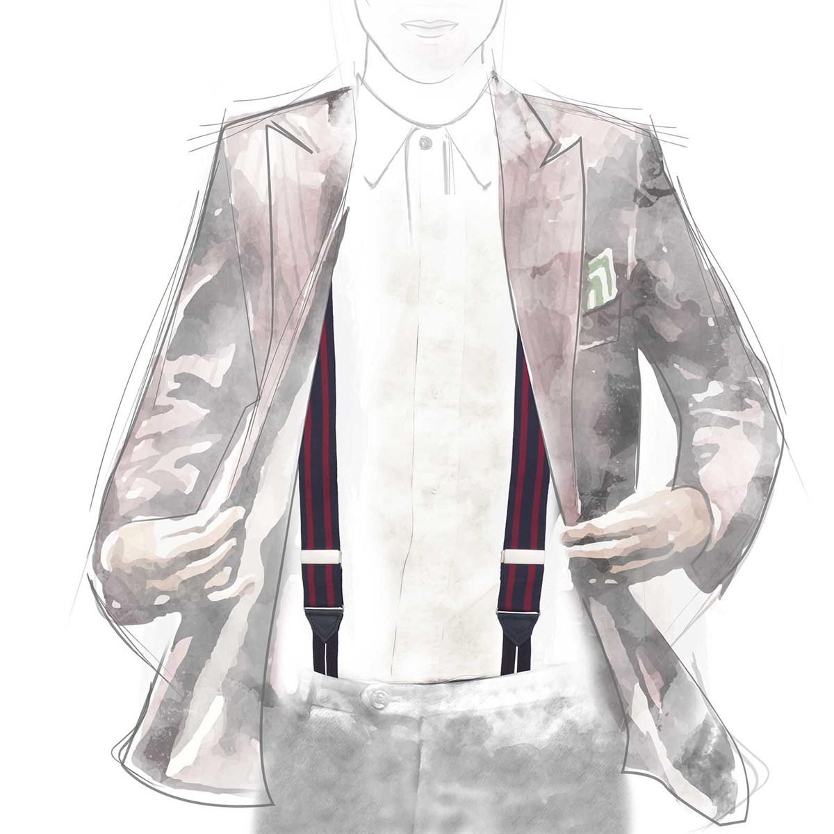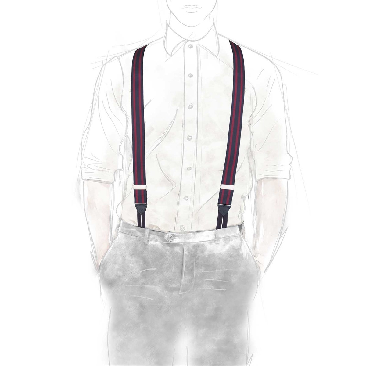 At Rubinacci, we believe that the right accessories can transform your style and boost your confidence. With our Blue and Burgundy Striped Suspenders, you’ll not only feel comfortable but also exude elegance and charm. Make a statement and redefine your personal style with this must-have accessory.