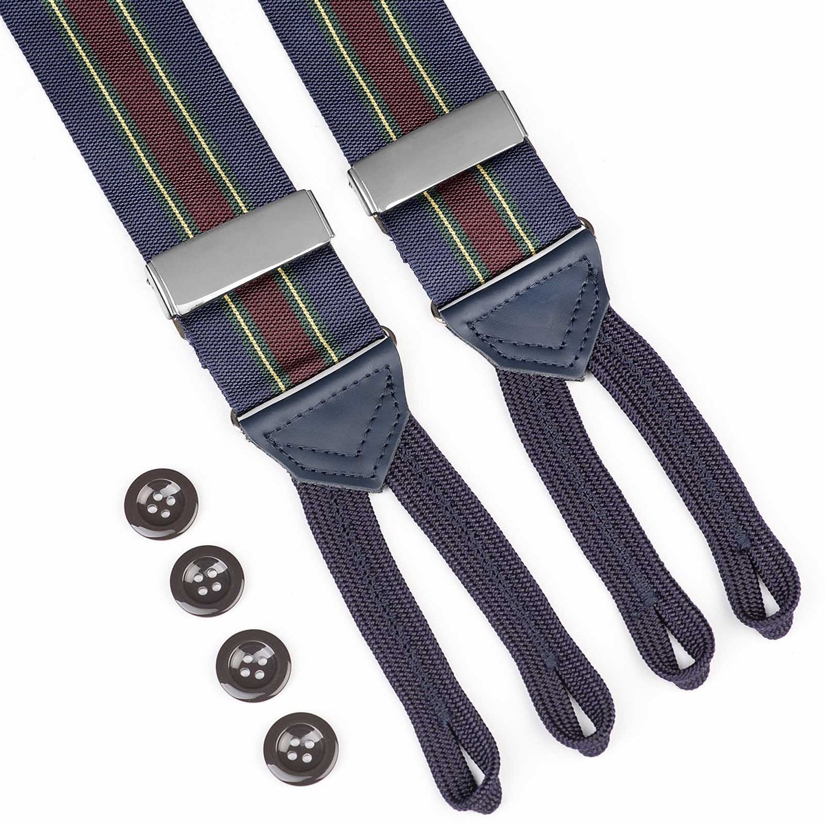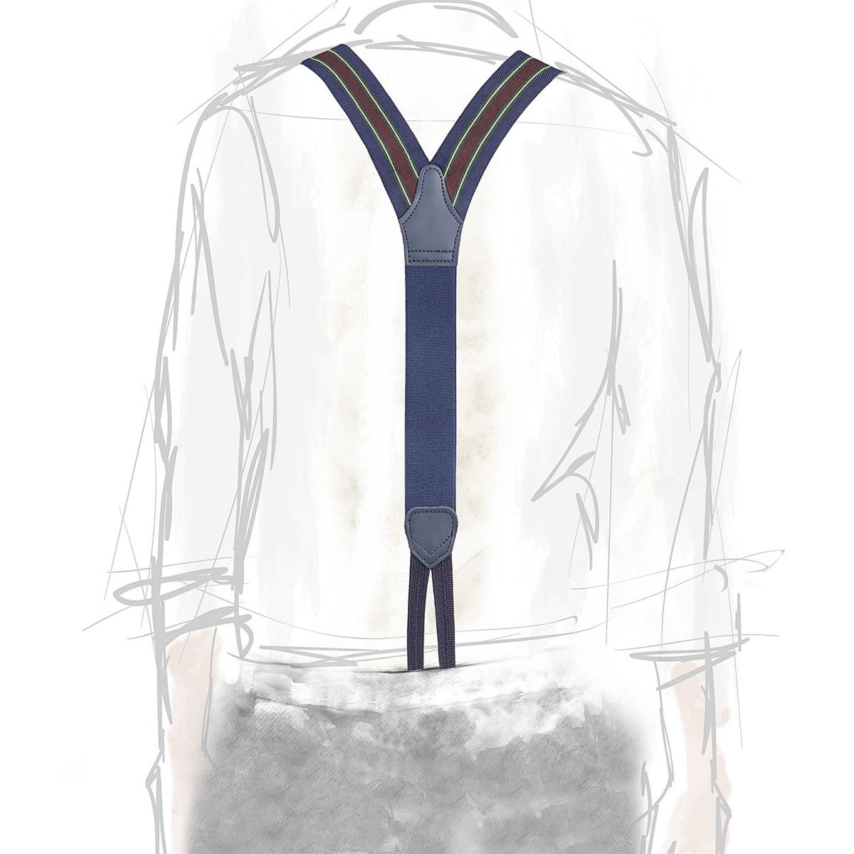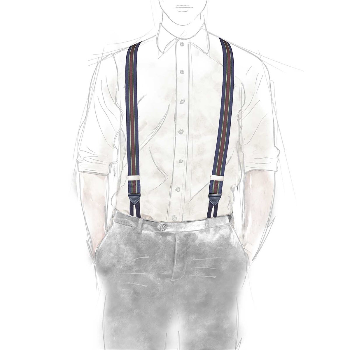Whether you're dressing up for a wedding, heading to the office, or simply adding a unique twist to your everyday attire, these suspenders will provide you with the confidence and sophistication you desire. Easy to adjust and secure, they promise a perfect fit for all body types. Pair them with tailored trousers or your favorite jeans for a look that truly stands out. Embrace the art of accessorizing with our Blue, Green, and Wine Striped Suspenders and make a statement wherever you go.