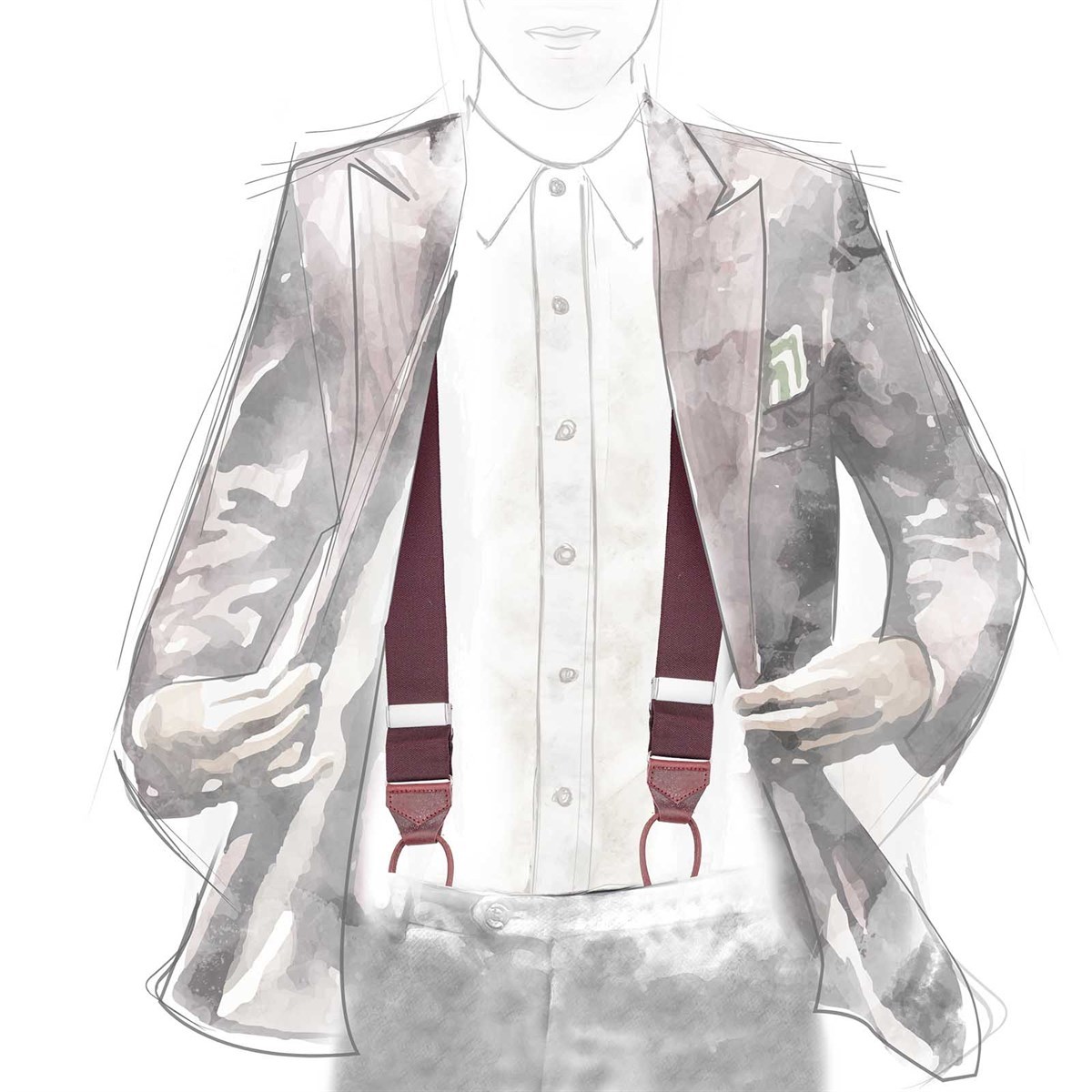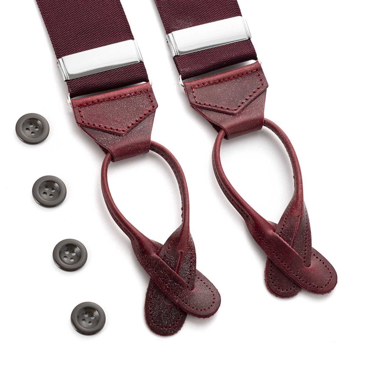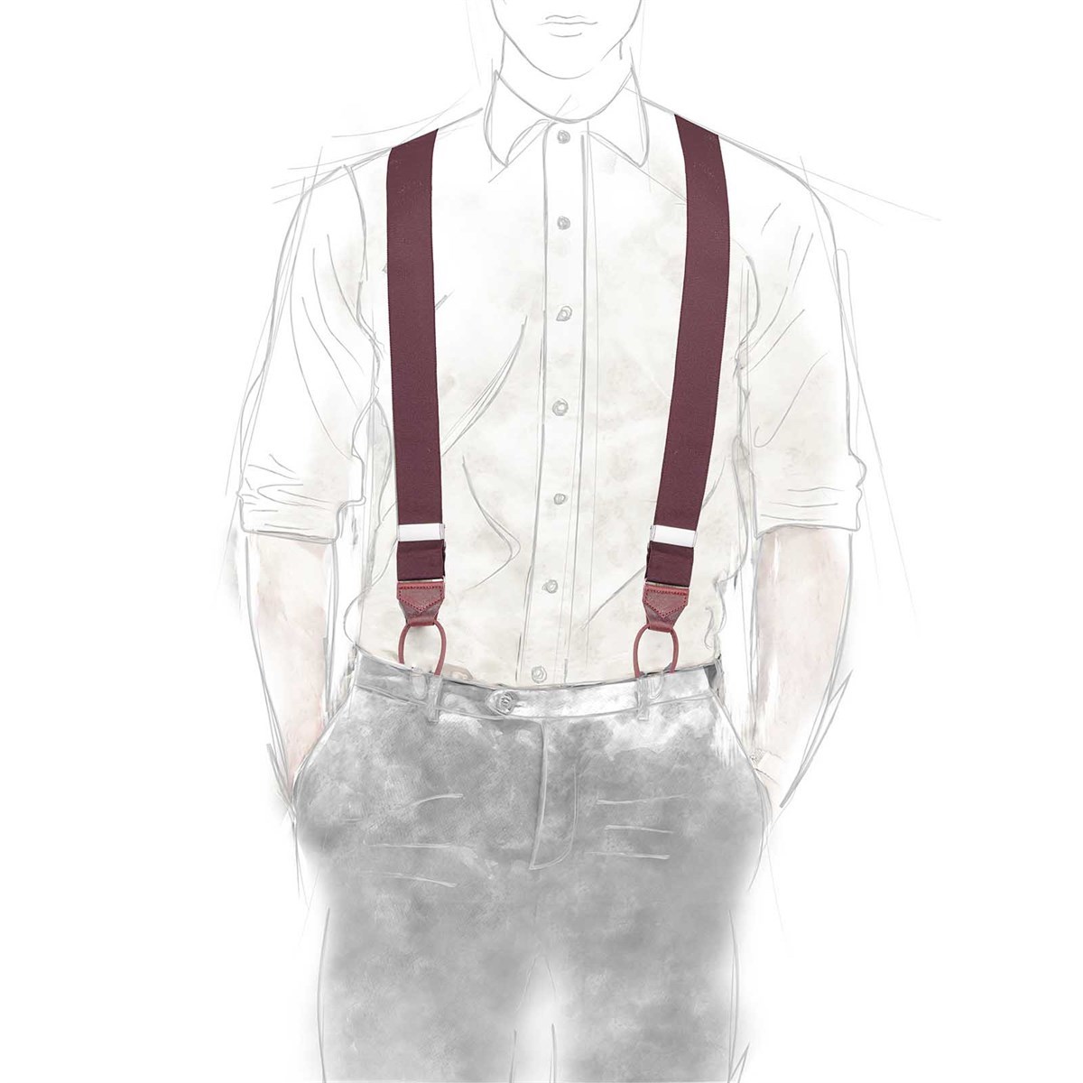 Crafted in England, these traditional braces are made with buttonholes and trimmed with leather.