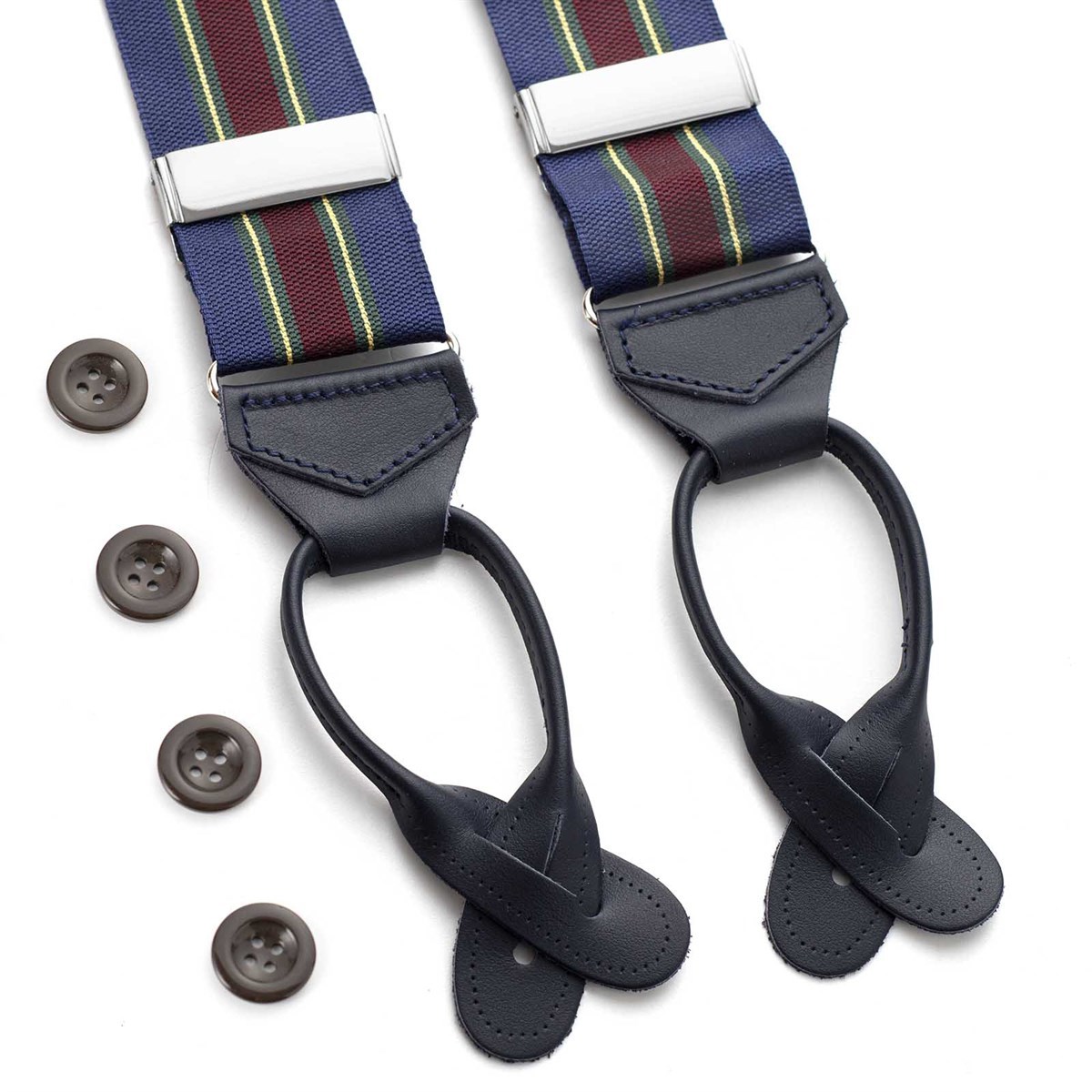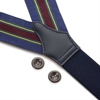 Crafted in England, these traditional braces are made with buttonholes and trimmed with leather.
