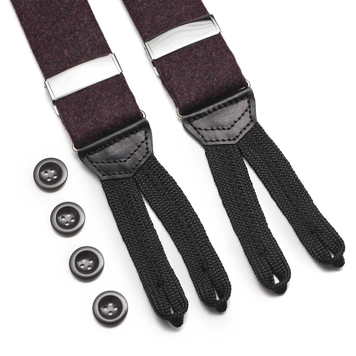 Whether you're dressing for a wedding, a business meeting, or a night out, these suspenders will provide the confidence and elegance you need to make a lasting impression. Embrace the art of accessorizing with our Plum Wool Braces and redefine your wardrobe with timeless sophistication.