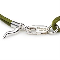 Rooted in Neapolitan tradition, this bracelet is not just a fashion statement; it’s a symbol of empowerment and positivity. The silk lace design offers a comfortable fit, while the secure silver clasp ensures that this piece will stay elegantly in place. Whether treating yourself or giving it as a thoughtful gift to a friend, the Bracelet in Olive Silk is a meaningful addition to any jewelry collection. Embrace style and tradition with this captivating accessory from Rubinacci.