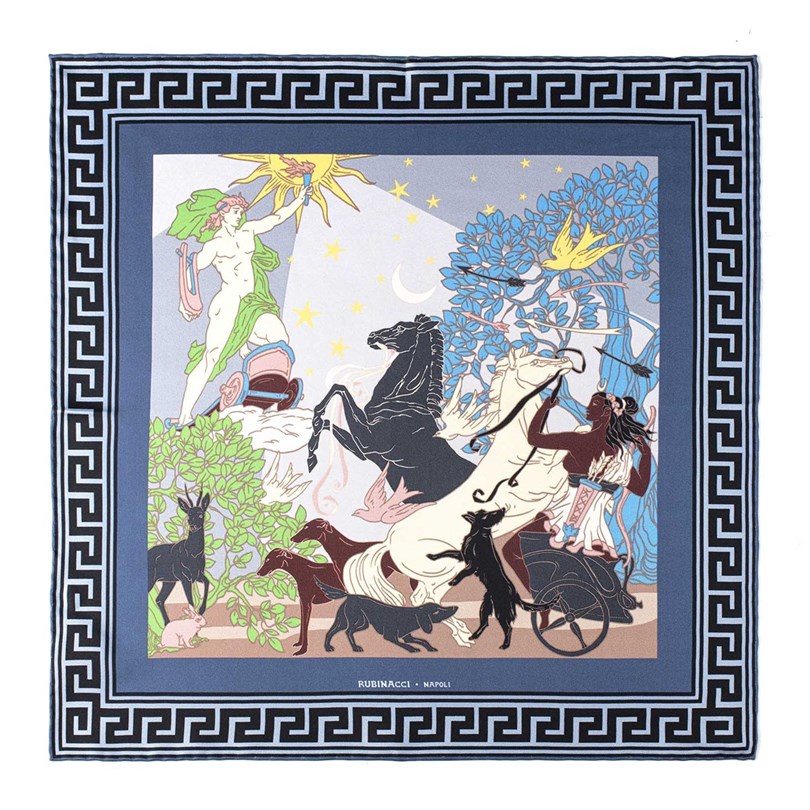 The design is not just about form; it embodies the spirit of the mythical twins, evoking a sense of mystery and allure. Ideal for special occasions or as a statement piece in your everyday wardrobe, the Artemide and Apollo Avion pocket square is both functional and stylish.