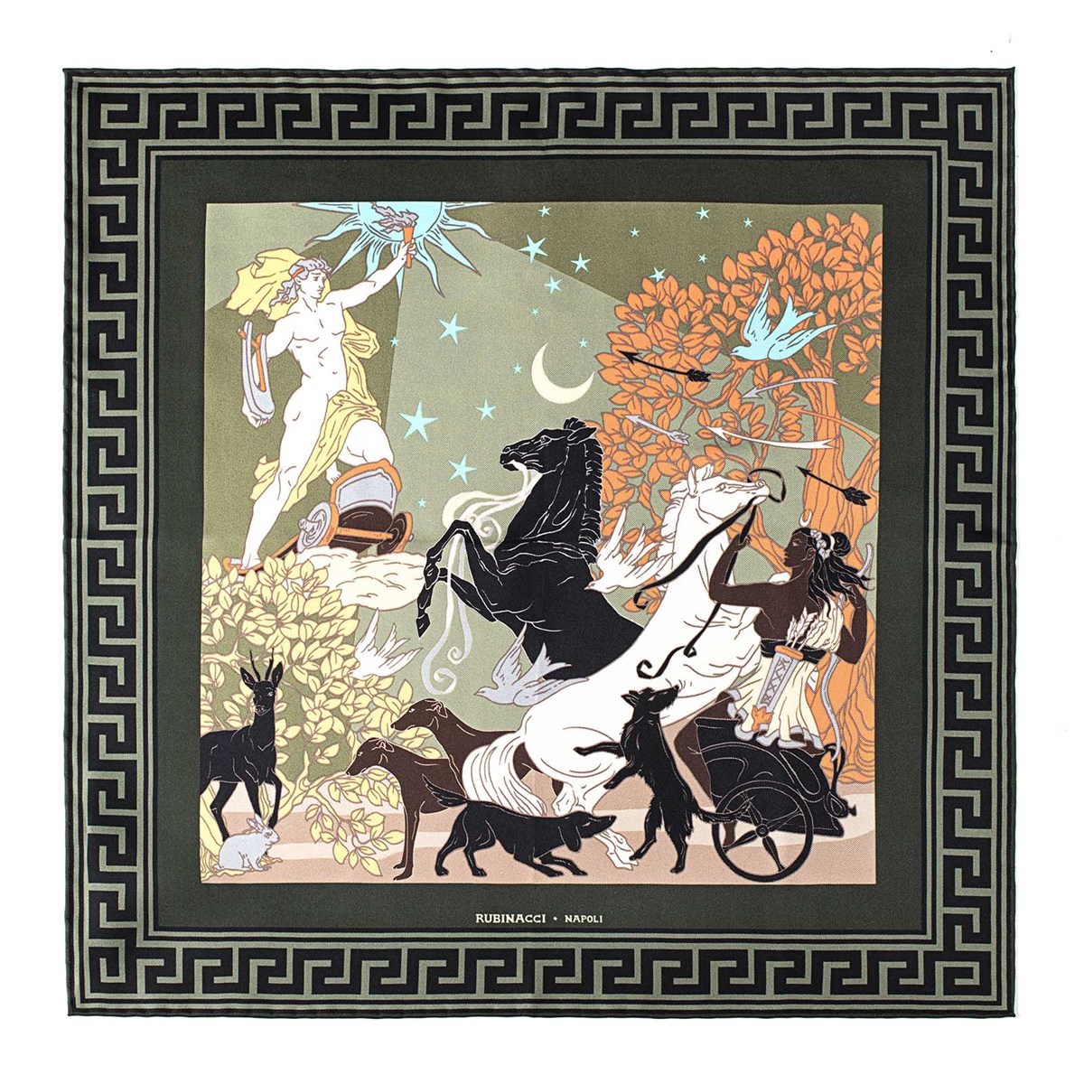 Whether you're attending a glamorous event or simply elevating your everyday style, the Apollo and Artemis Green pocket square is the perfect statement piece. Embrace the charm of the divine and let this exquisite accessory become a cherished addition to your collection. Elevate your style with the magic of the mythical twins and experience the allure of Rubinacci craftsmanship.