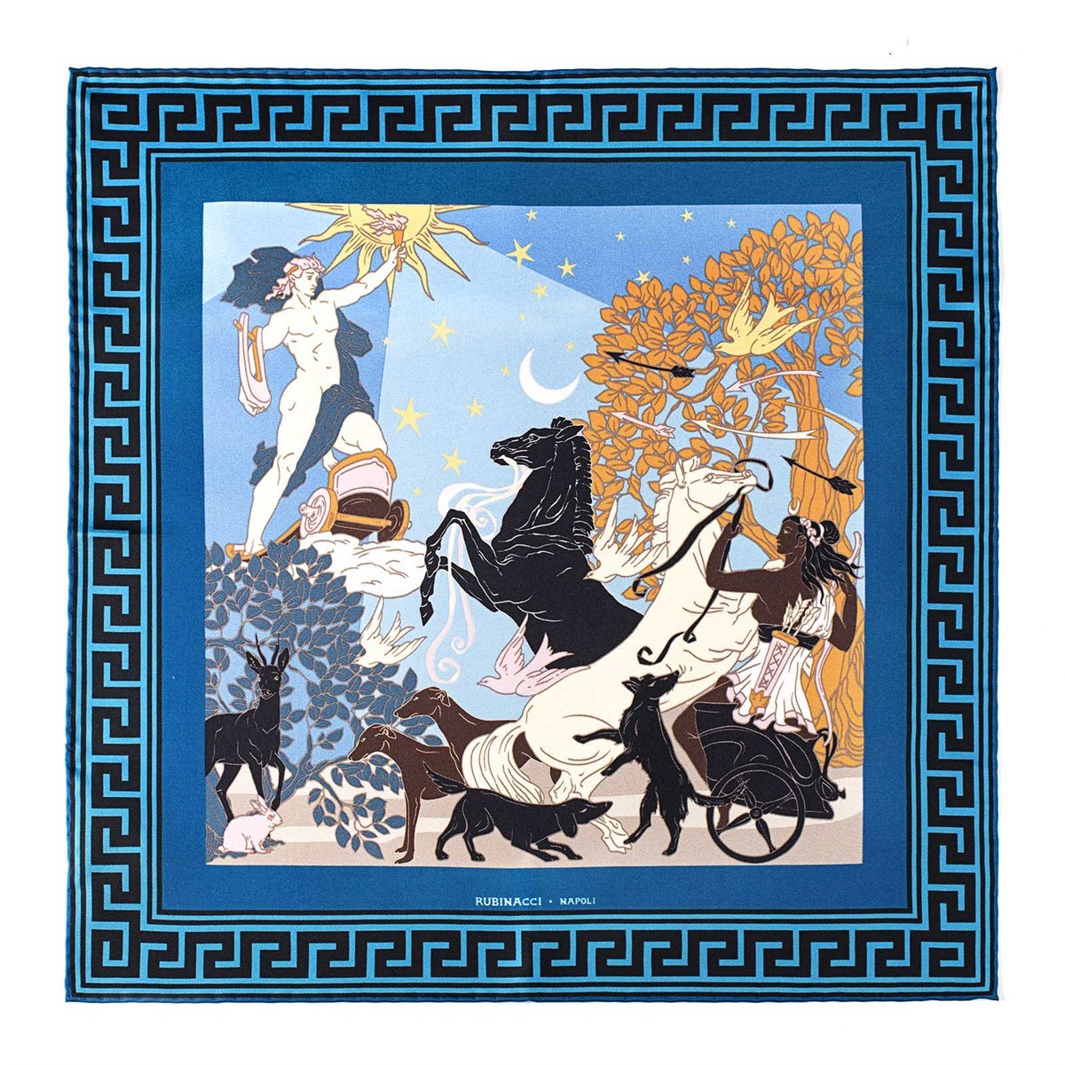 This pocket square is not just a fashion statement; it is a piece of art that tells a story. The design captures the essence of Apollo and Artemis, whose mystique and allure have fascinated generations. With a spacious interior, it is ideal for carrying your essentials while adding a touch of timeless elegance to any outfit. Whether you are attending a formal event or a casual gathering, the Artemis and Cerulean Apollo pocket square will elevate your ensemble and leave a lasting impression. Embrace the divine charm of these mythical figures and make a statement with this unique accessory.