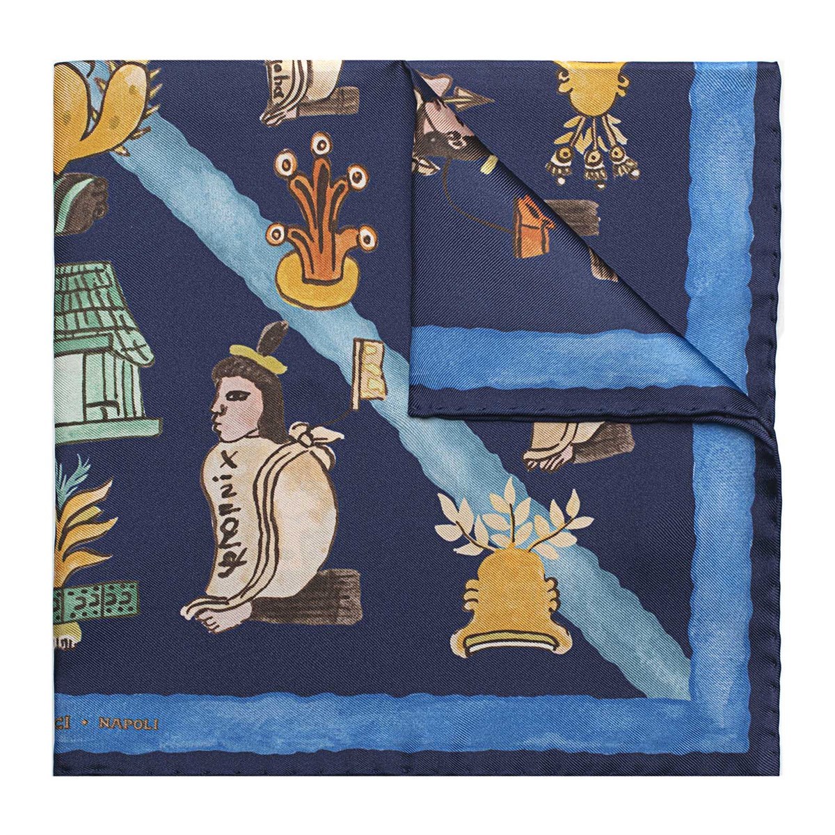 The design of the Blue Mendoza pocket square reflects the intricate artistry and vibrant colors that characterized Mesoamerican culture. Its elegant silhouette makes it a versatile addition to any wardrobe, suitable for both formal events and casual outings. The pocket square is spacious enough to hold your essentials while maintaining a sleek and refined appearance.