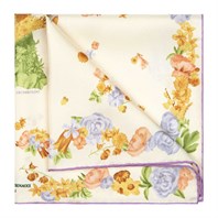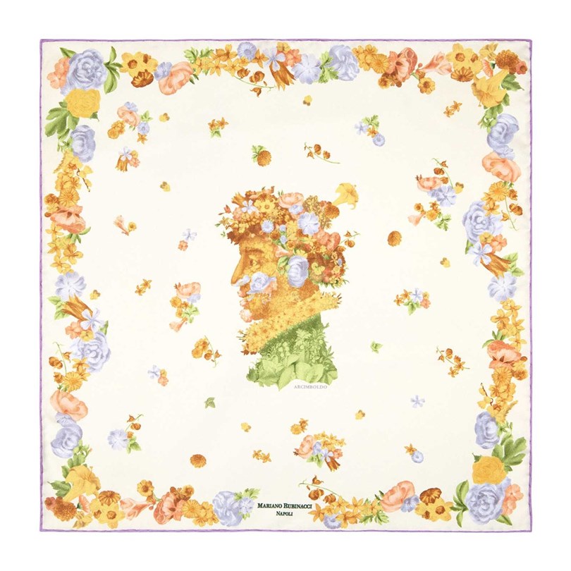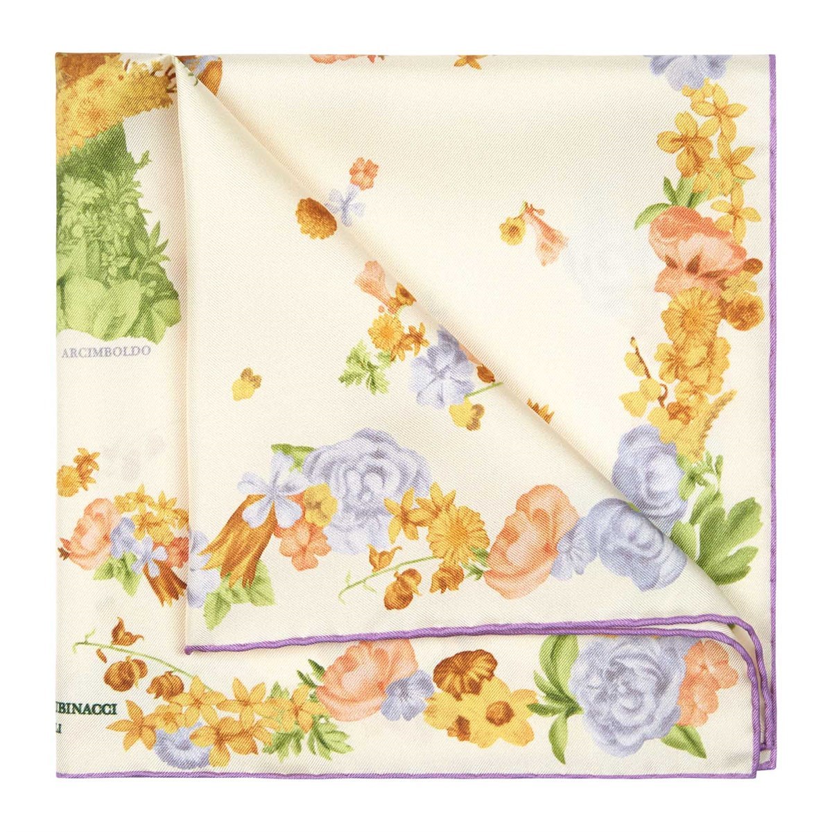 Crafted from 100% silk twill, the pocket square features rich lilac tones and intricate details, making it a statement piece that captures the essence of spring. The vibrant colors and artistic design not only reflect Arcimboldo's unique style, which famously incorporated fruits, flowers, and other objects into striking portraits but also ensure that this pocket square is a conversation starter.